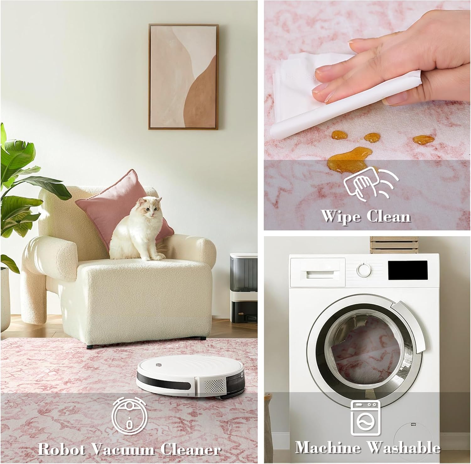 • Kids and Pets Friendly Carpet Runner: Skin-friendly entryway runner is perfect for families with kids and pets. You can sit on the runner rug for bedroom and play games with your children or pets, the low pile fibers won't hold too much dirt or pet's hair.