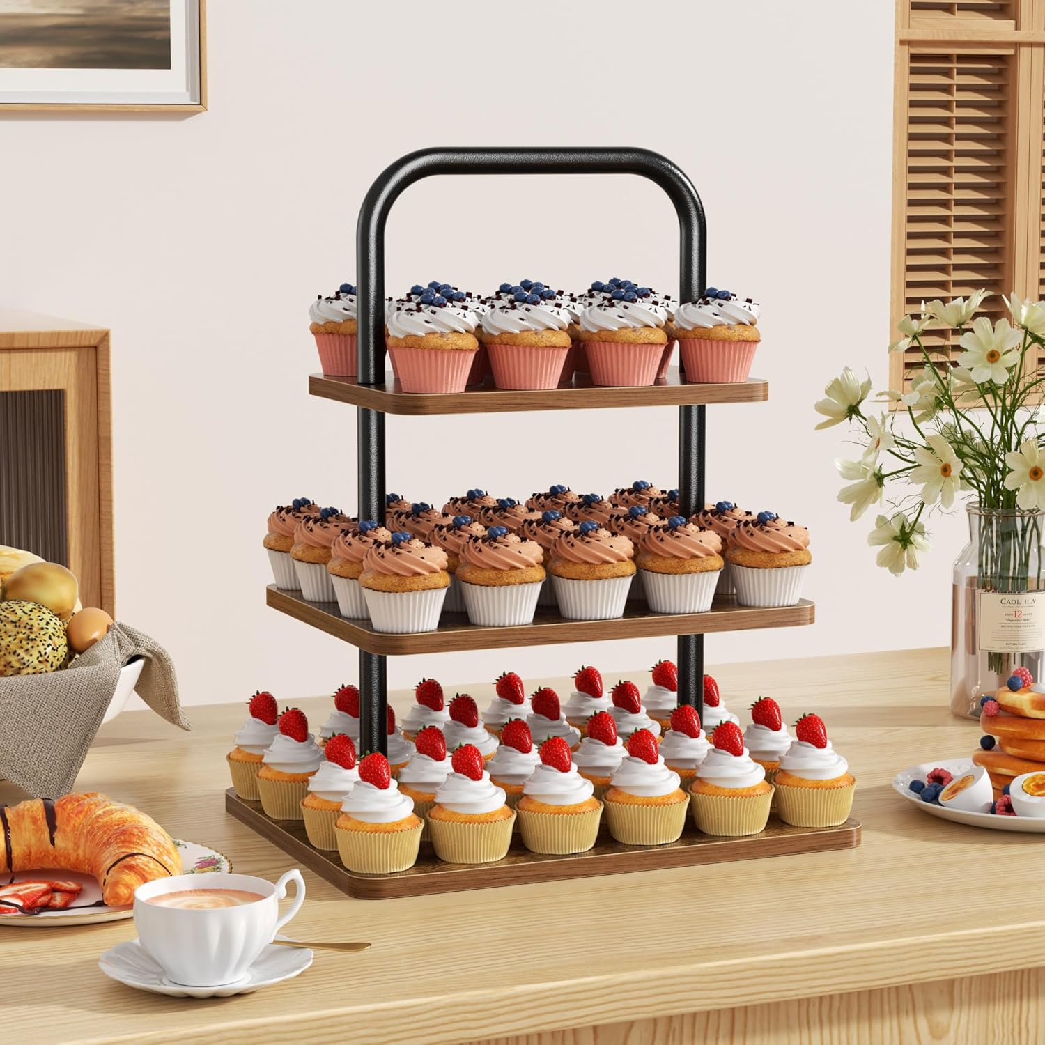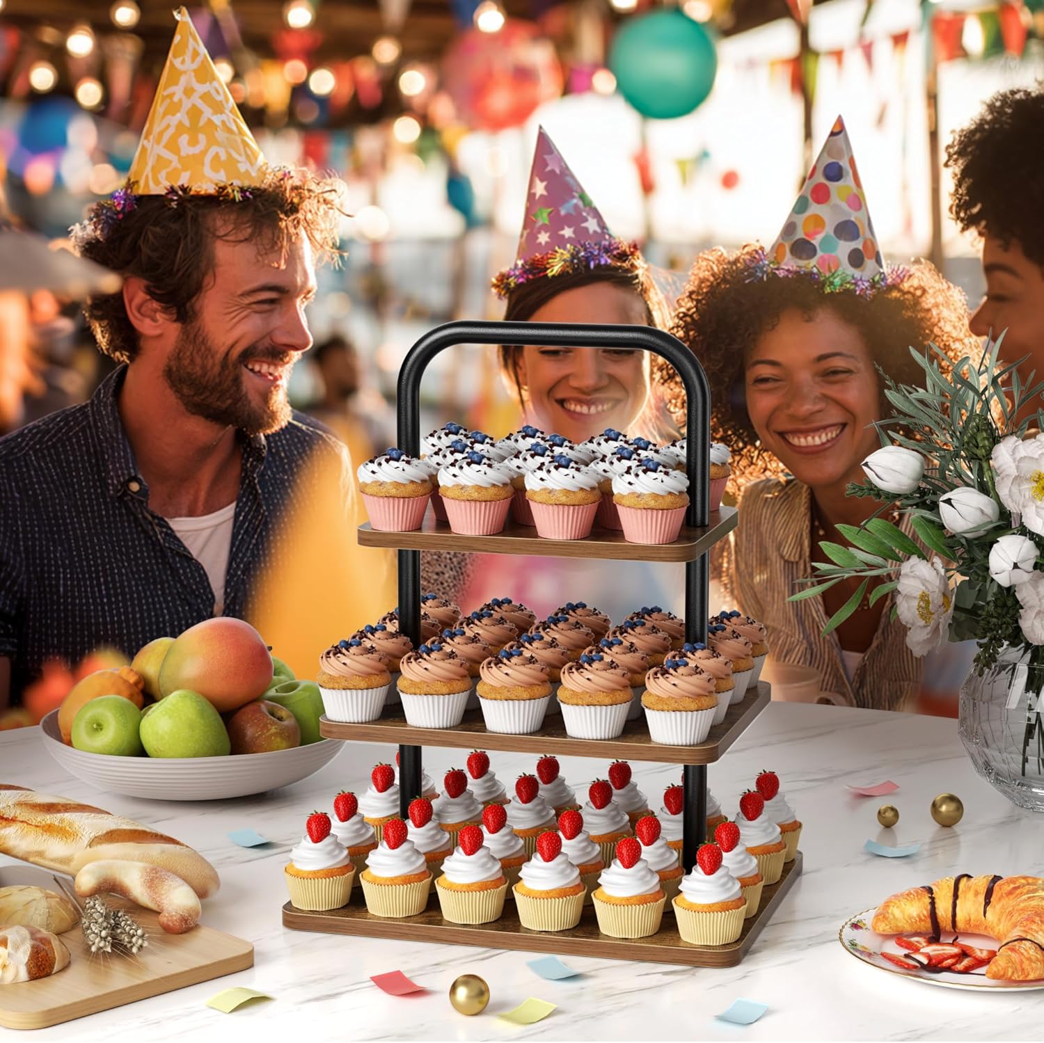 • 【Tool-Free, Quick Setup】3 tier cupcake stand includes pre-drilled boards, labeled metal posts, and a complete set of screws and clear instructions. It assembles in under 10 minutes—even for first-timers. A reliable solution for event planners, bakers, or hosts who need a fast, no-hassle dessert table display set
