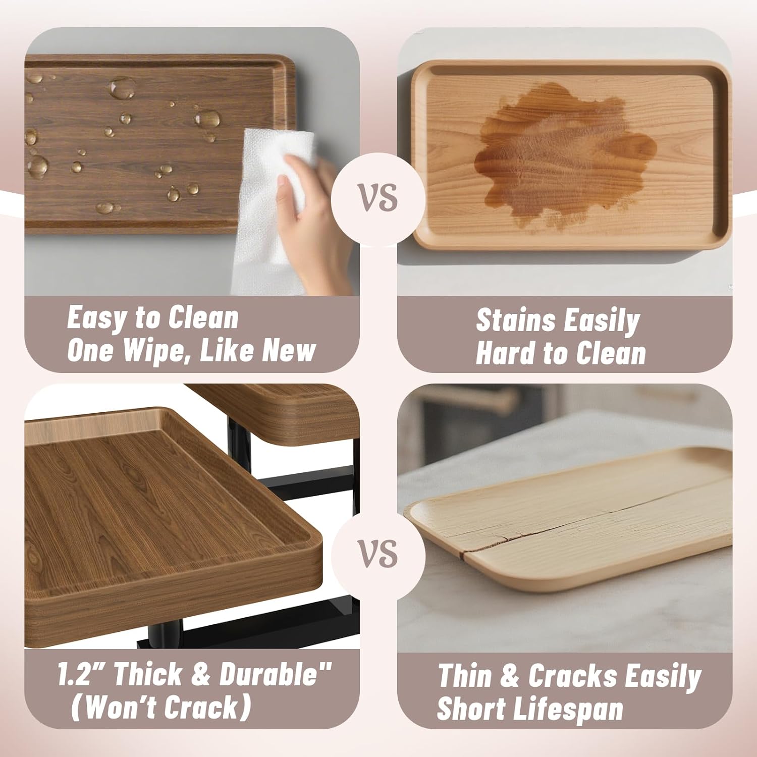 • Built to Last– Made with thick 1.2" MDF boards and a 1” thick heavy-duty metal frame, this wooden serving tray is designed to support up to 30 lbs without wobbling. Unlike flimsy stands, the solid structure resists cracking, warping, and bending, making it a reliable choice for years of entertaining.