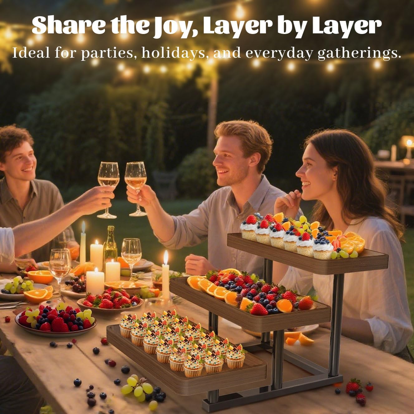 • Easy Assembly – Setting up this 3-tier wooden serving tray couldn’t be easier. You can assemble the entire tray in 15 minutes without any tools or complicated instructions. When the party is over, simply disassemble the tray for compact storage, making it practical, stress-free, and ready for your next event.