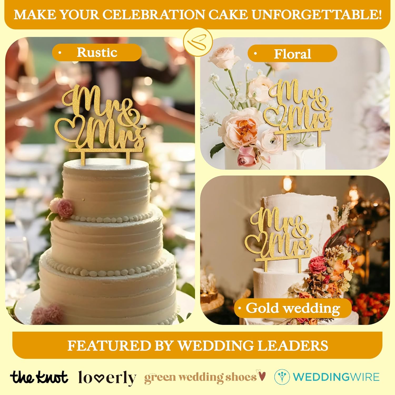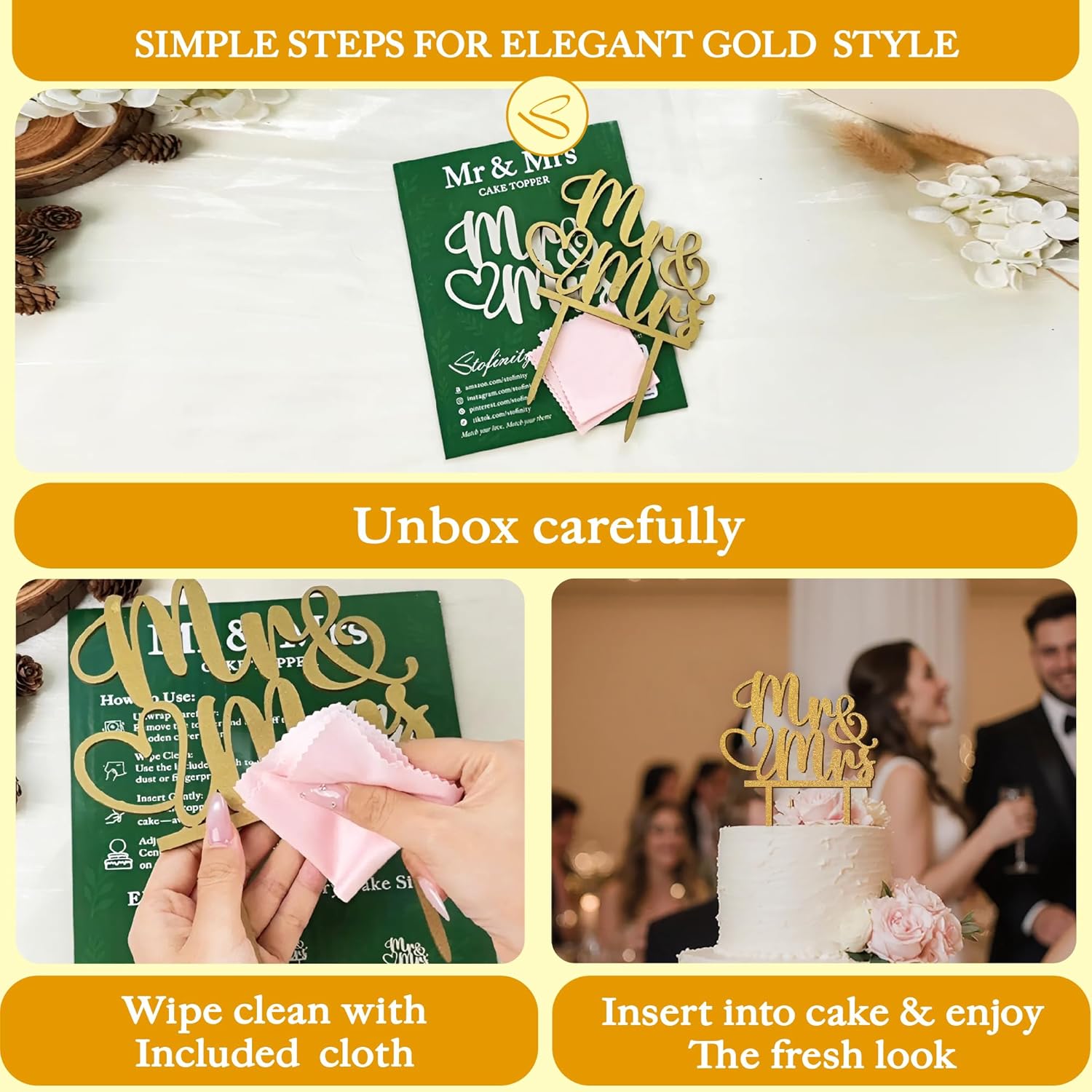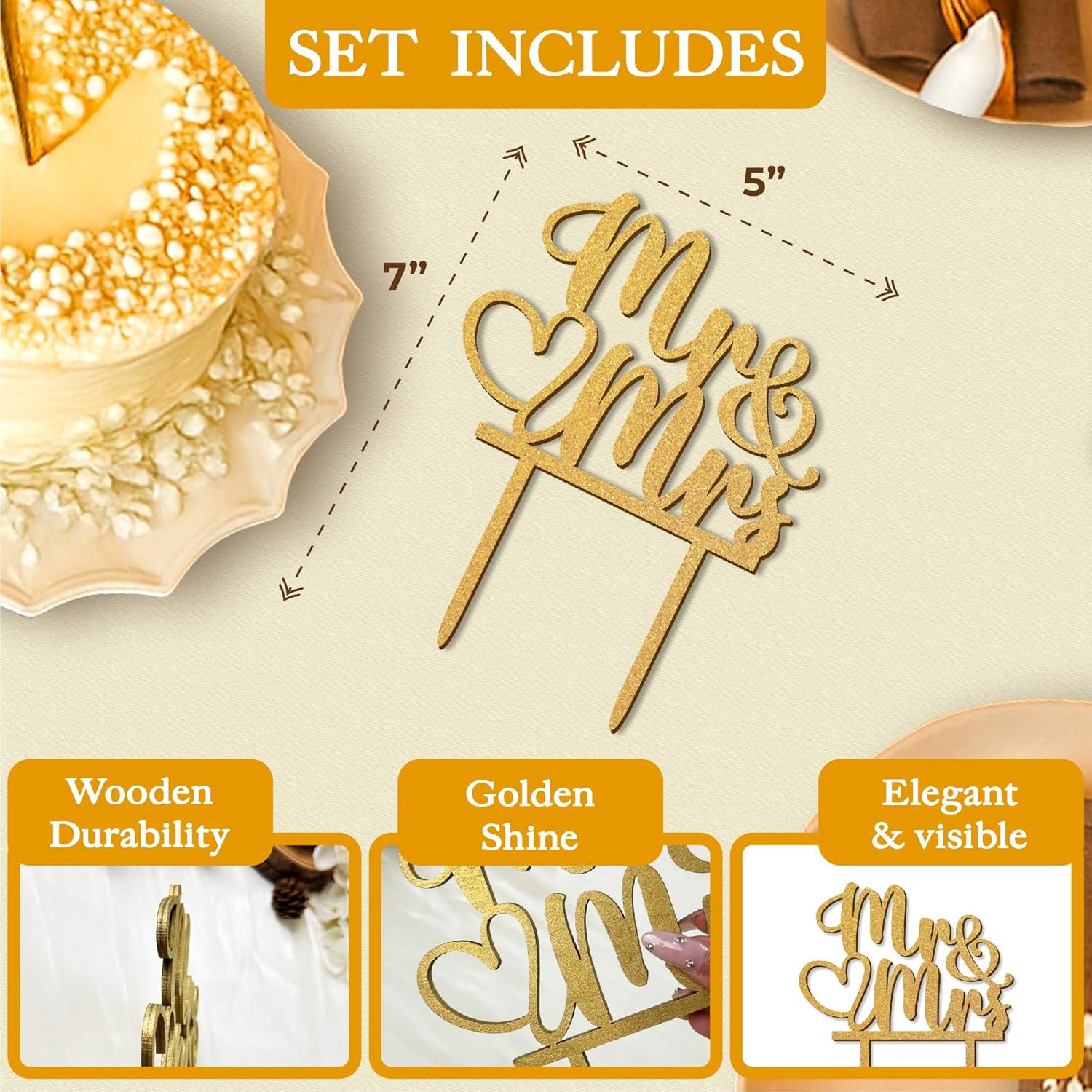• Set include: features 1 stunning golden bride and groom cake topper, designed as a classic mr and mrs cake sign for a timeless look