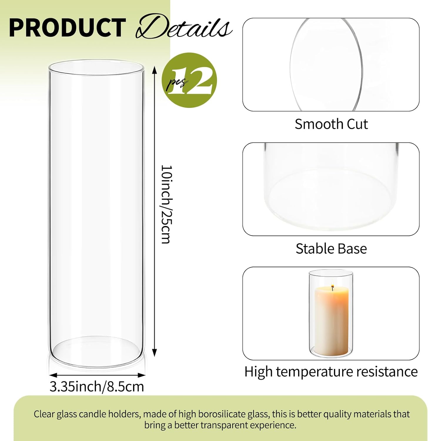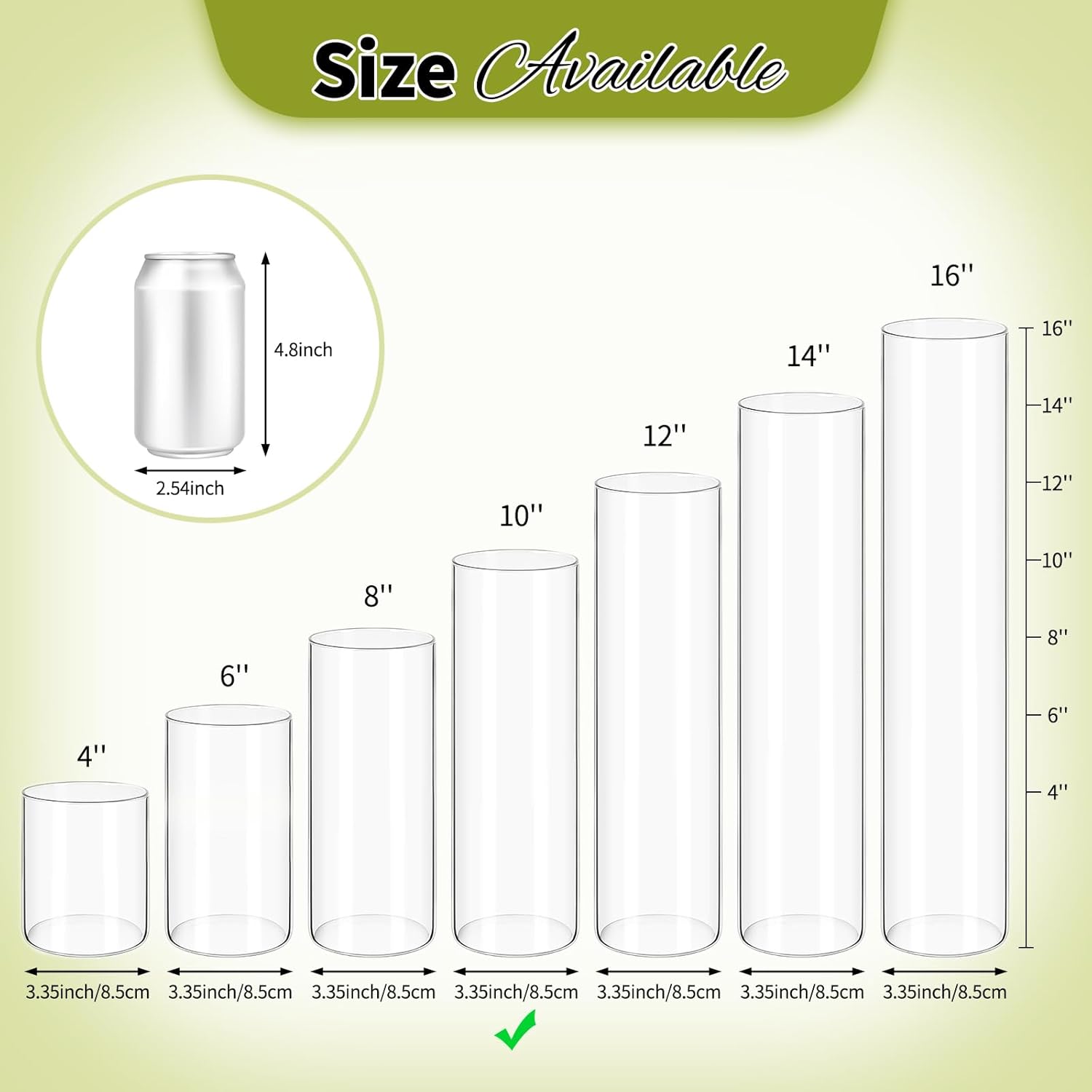 • ✅ Classic Cylinder Vase: This vase set contains 12 pack clear cylinder vases, the height is about 10 inch and the diameter is about 3.35 inch. Our glass vases are available in sizes from 3.35*4" to 3.35*16", ideal for various flower vases, vases for centerpieces, and candle holders. Its versatile uses makes it perfect for creating elegant centerpiece table decorations.