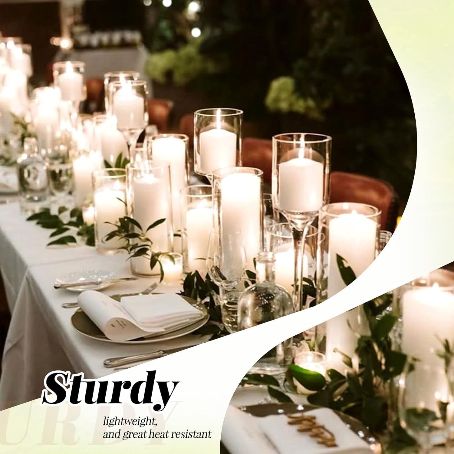 • ✅ Premium High-borosilicate Glass: Crafted from food-grade, heat-resistant borosilicate glass, our vases for centerpieces ensures exceptional clarity and durability. Designed with a solid base and smooth, polished rim, this flower vase provides stability and safety during use. This sturdy material can withstand greater temperature changes than regular glass. Perfect for use as a hurricane floating candle holder or for pillar candle holder.