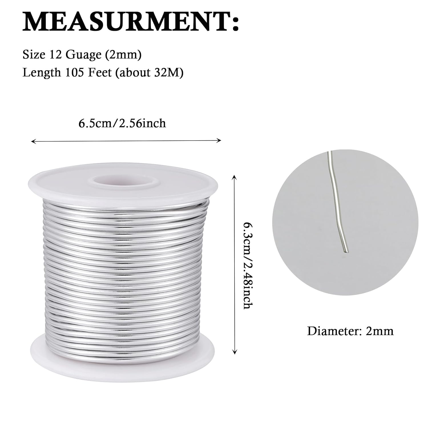 12 Gauge Sliver Aluminum Craft Wire (105FT) - Anodized for Jewelry Making, Beading Floral, Plant Gardening, Sculpting & Modeling Craft Wire (Sliver #1, 2mm)