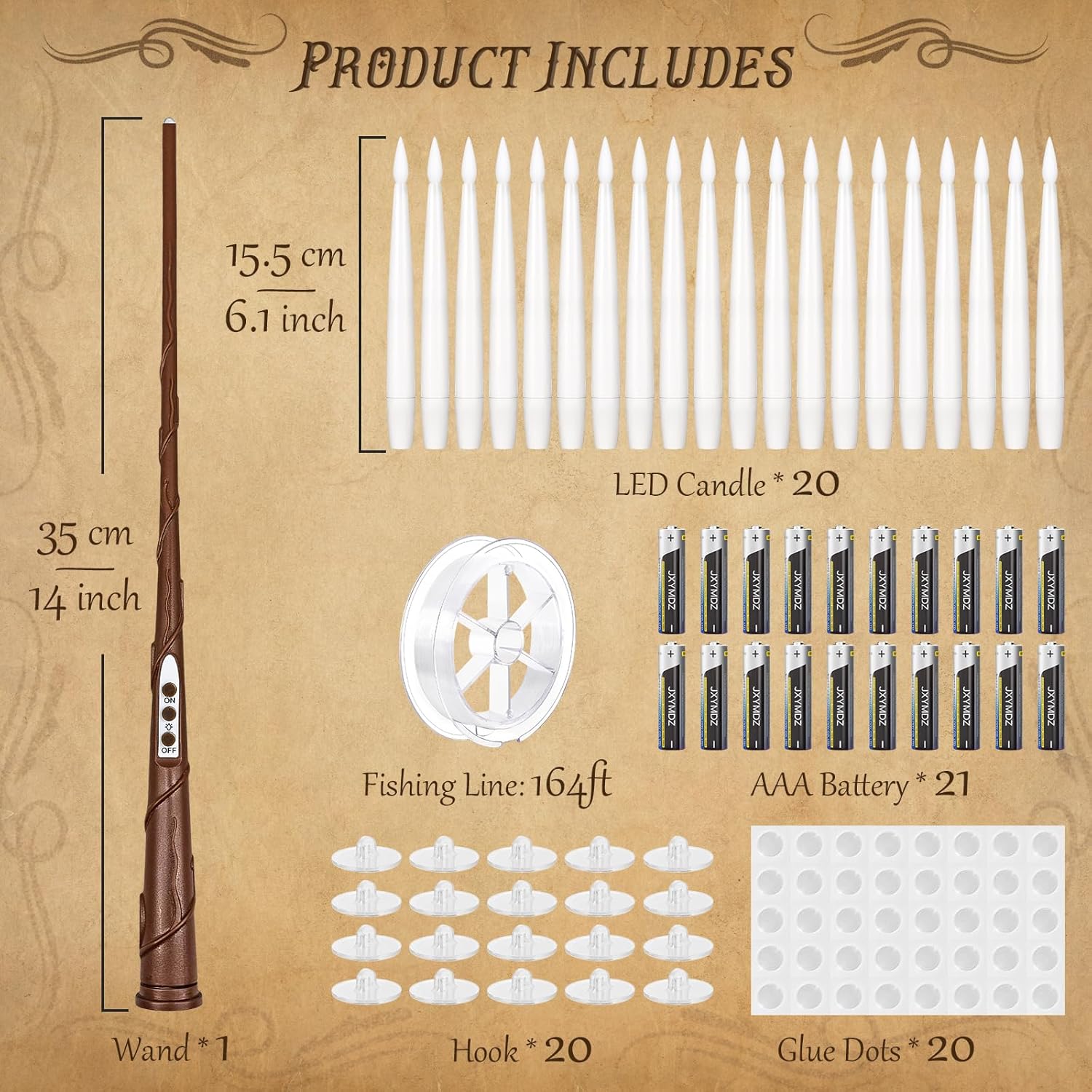 • Package List: 20* candles, 21* AAA lithium batteries, 1* fishing line, 20* glue dots, 1* magic wand, 1* user manual. We value each customer, and our after-sales team will provide each customer with satisfactory service and ensure you have the best experience possible. if you have any questions, please contact us, and we will answer you as soon as possible