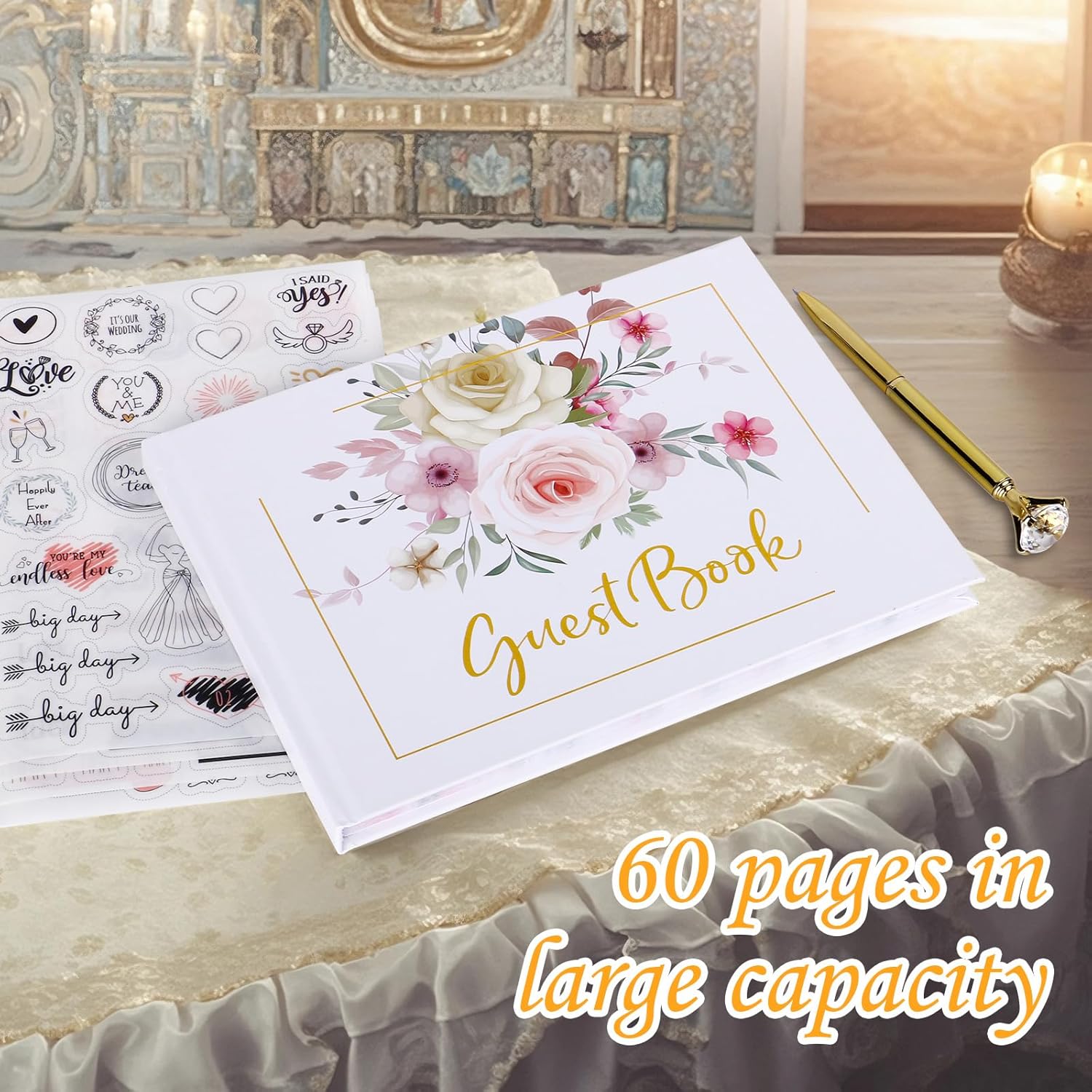 • High Quality:This wedding guest book is made thick paper that prevents ink from bleeding and give you a smooth writing experience,Designed with 120 pages (60 sheets),ensuring your precious notes are preserved.