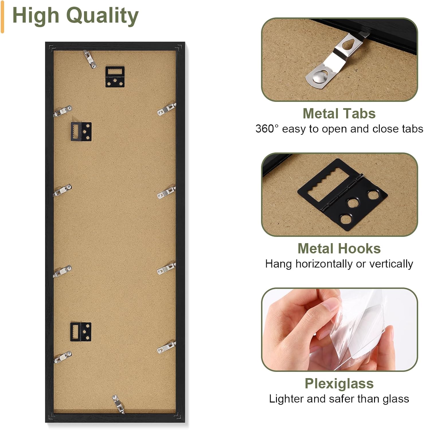 • Perfect Photo Fit: The 8x24 collage frame holds five 4x6 photos with mat or one 8x24 photo without mat. Each 4x6 opening is designed 0.5 inches smaller for a secure grip in this classic black frame