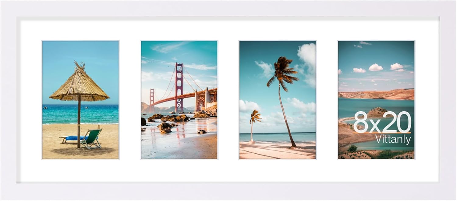 Vittanly 8x20 Collage Picture Frame, Displays 4Pcs 4x6 Pictures with Mat, Picture Frames Collage Wall Decor for Horizontal or Vertical Display, White, 1 Pack