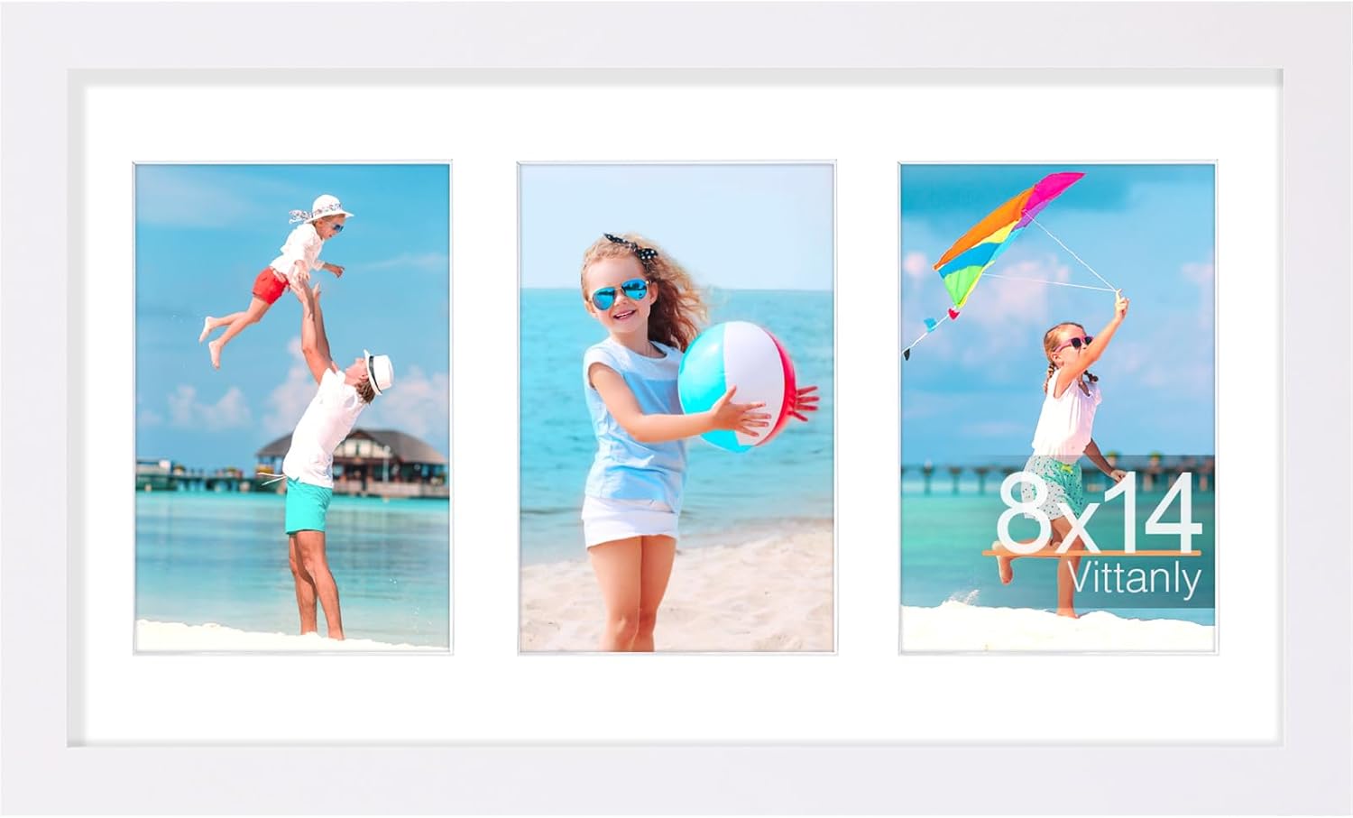 Vittanly 8x14 Picture Frames Collage, Displays 3Pcs 4x6 Pictures with Mat, Collage Picture Frame for Horizontal or Vertical Display, White, 1 Pack