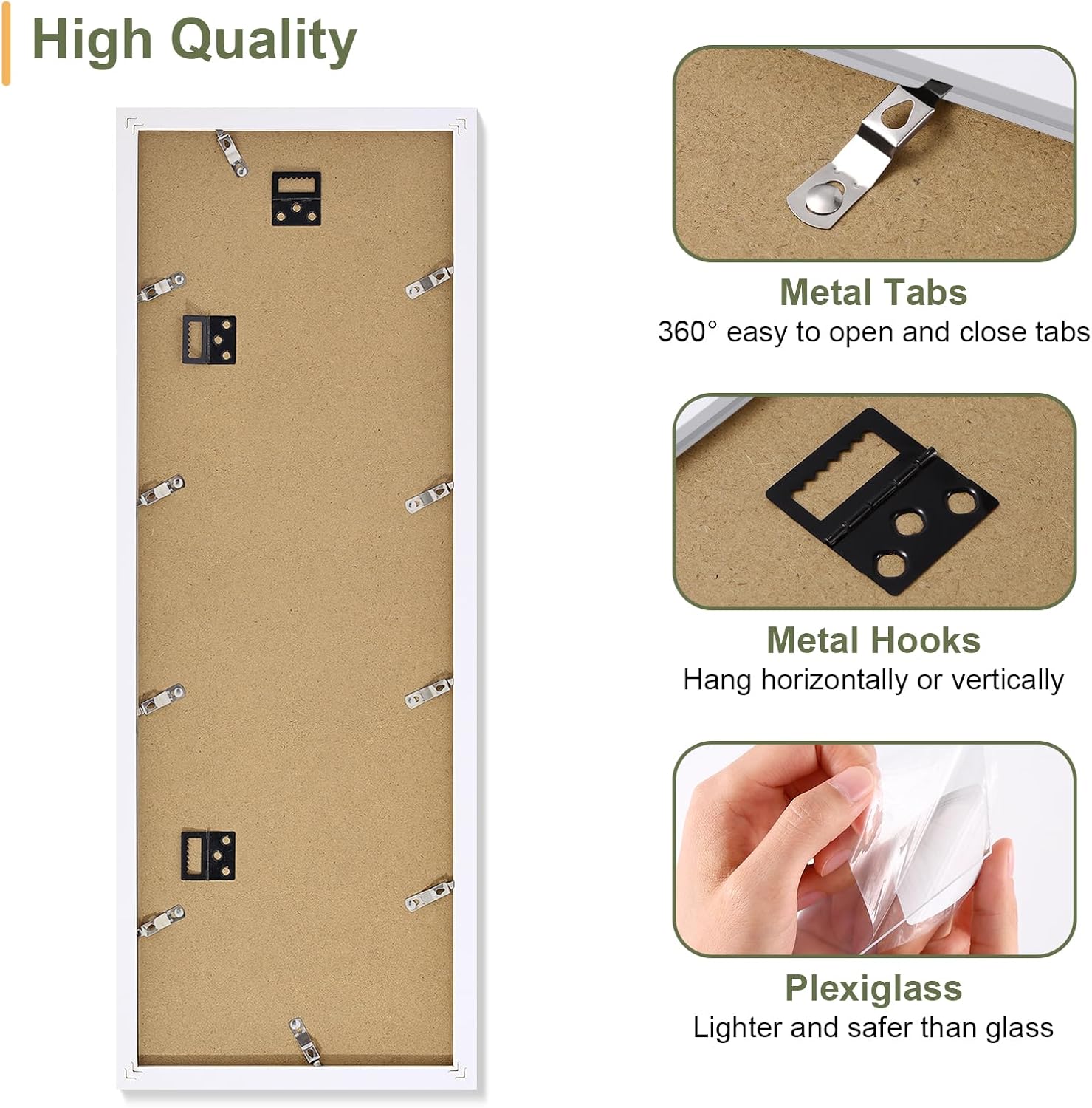• Perfect Photo Fit: The 8x24 collage frame holds five 4x6 photos with mat or one 8x24 photo without mat. Each 4x6 opening is designed 0.5 inches smaller for a secure grip in this 8x24 frame