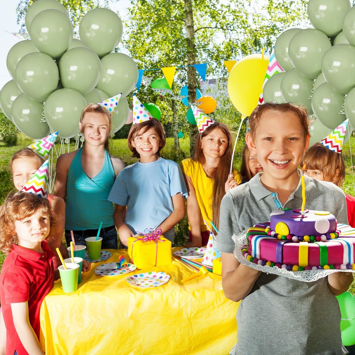 • 🎈 Complete Boho Decor Kit : Everything you need in one box: 100 high-quality sage green latex balloons and 66 feet of matching ribbon. Perfect for creating stunning balloon arches, garlands, clusters, and photo backdrops without any extra purchases.