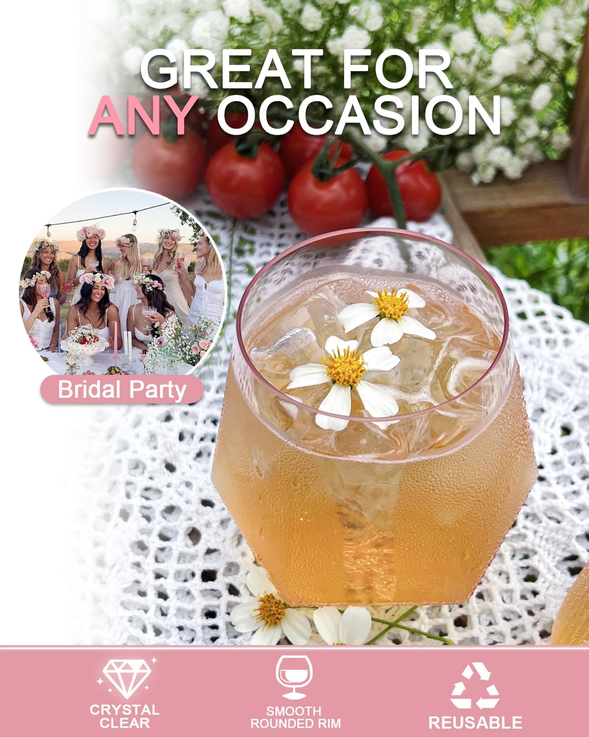 40 Pcak Plastic Stemless Wine cocktail Whiskey Champagne Glasses, 12 Oz Disposable Unbreakable Cups for Party Bars Wedding Tasting (Pink)