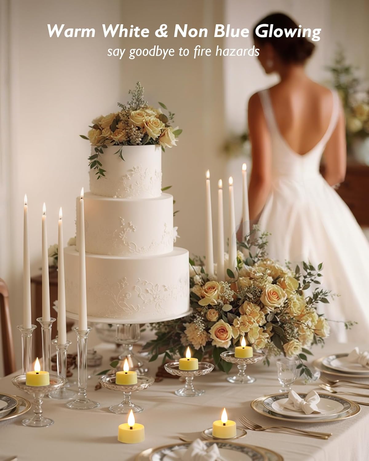 • Realistic Design: Our remote tea candles feature a dripping real wax look simulation , combined with a lifelike 3D black wick, that mimics the flickering glow of traditional candles. Perfect for adding a festive touch to weddings, engagements, Halloween, Christmas, themed party, birthdays, and other special occasions