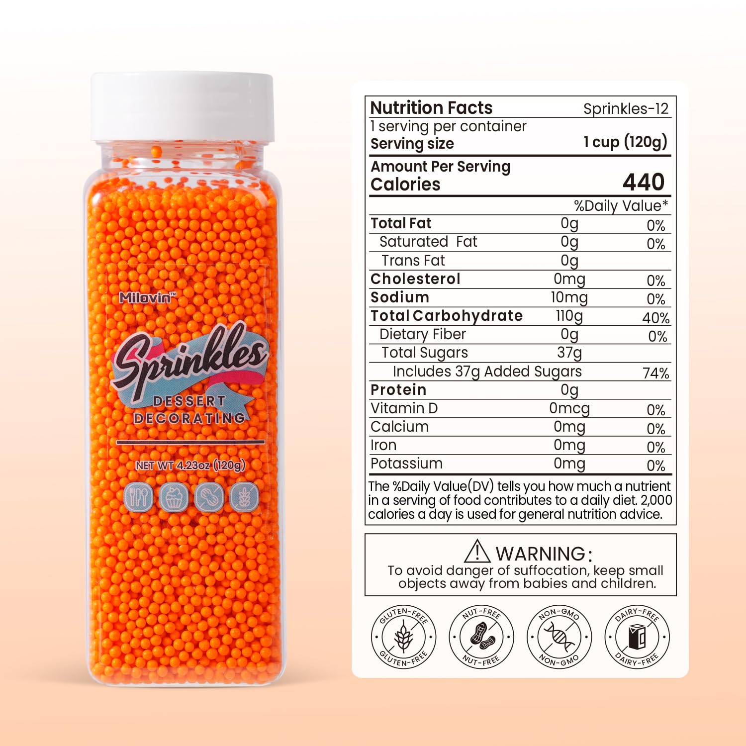 • Orange Nonpareils Sprinkles: A bottle of edible orange sprinkles(120g/4.23oz), whether it's cakes, cupcakes, cookies, ice cream, cake pops, brownies, or any dessert you can dream of; our orange sprinkles are your go-to for that extra dash