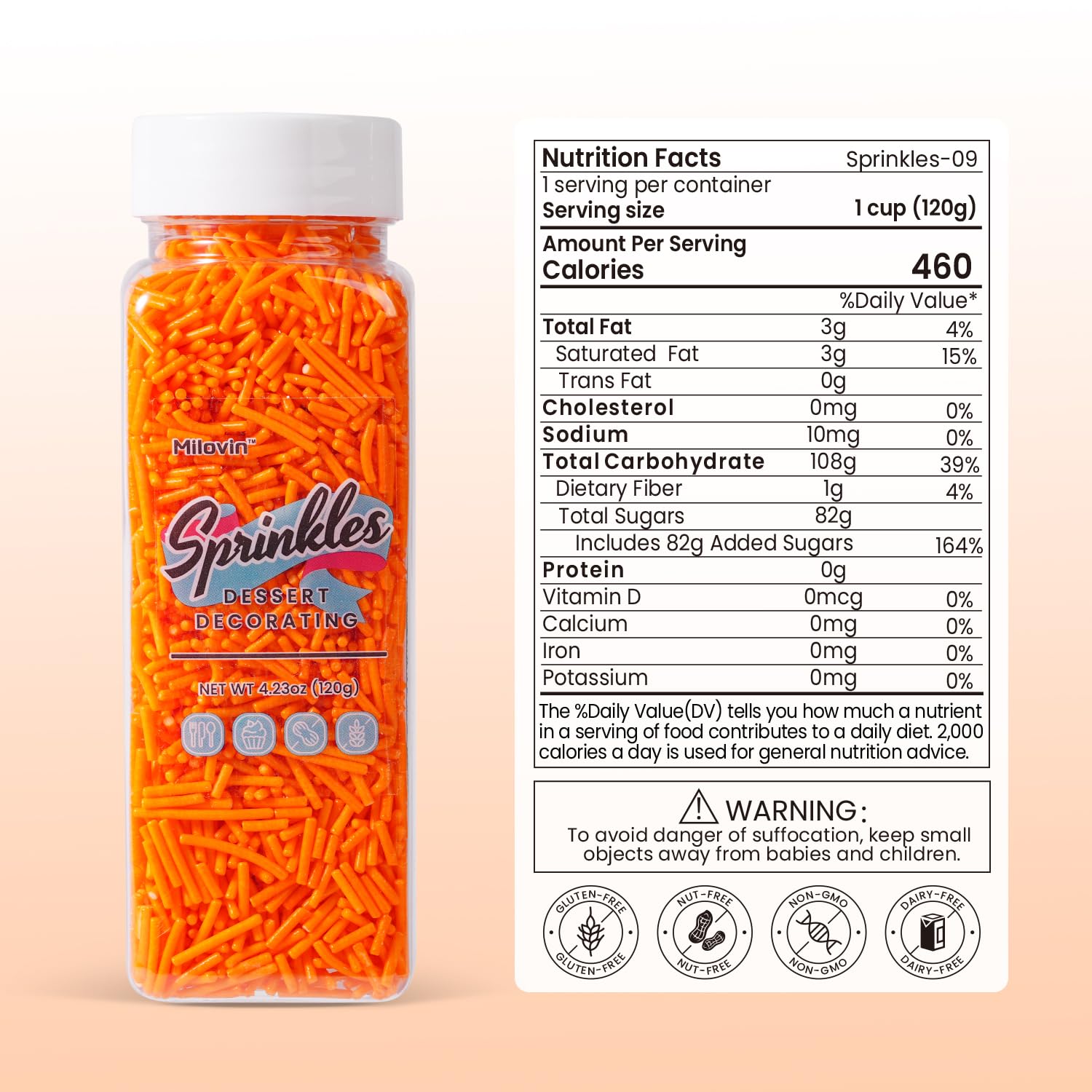 • Orange Jimmies Sprinkles: A bottle of edible orange sprinkles(120g/4.23oz), whether it's cakes, cupcakes, cookies, ice cream, cake pops, brownies, or any dessert you can dream of; our jimmies are your go-to for that extra dash