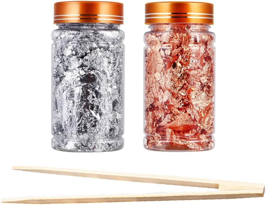 • with Wooden Tweezers: These gold flakes with tweezers come pre crushed into small, manageable pieces, our metallic foil flakes come with tweezers to help you easily pick up gold foil fragments, ensuring precise placement without any hassle; Each bottle contains 10g of flakes, with a total of 20g included in the package