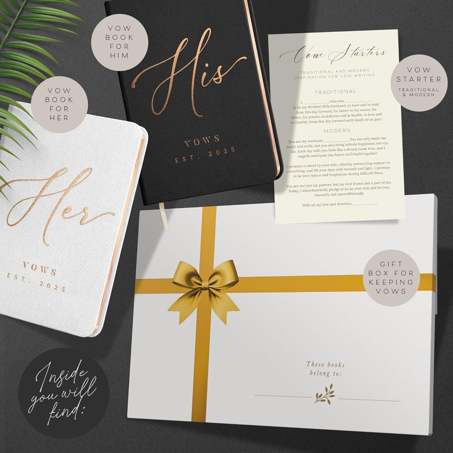 • VOW STARTER GUIDES & HELPFUL WEDDING ITEMS: Includes two vow inspiration guides with thoughtful examples and structured ideas to help you create meaningful, heartfelt vows during the wedding planning process.
