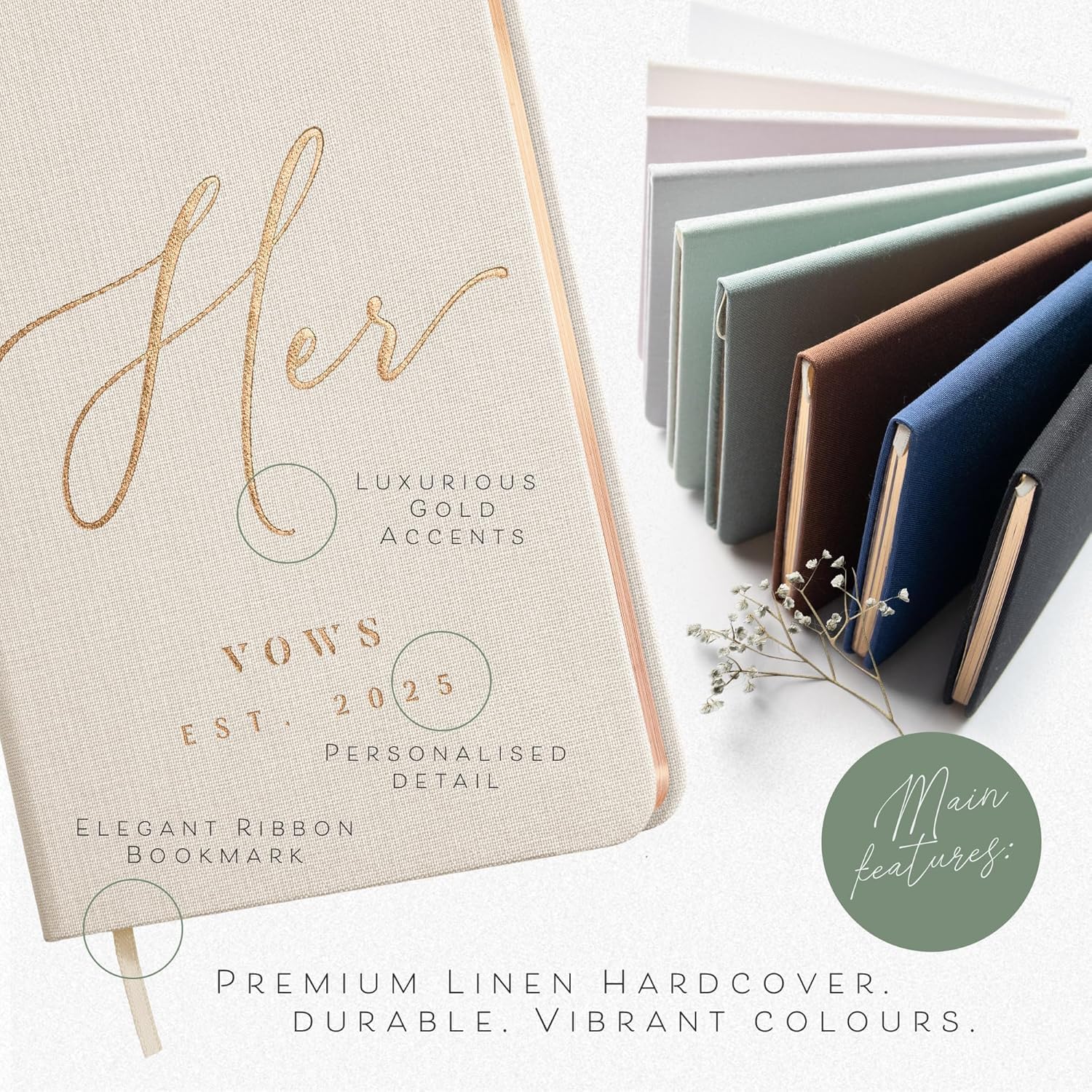 • LUXURIOUS WEDDING ESSENTIALS GOLD ACCENTS: All his her vows books feature gold-foiled “His” and “Her” engravings on the covers, and elegant gold-gilded page edges for a refined and sophisticated finish.