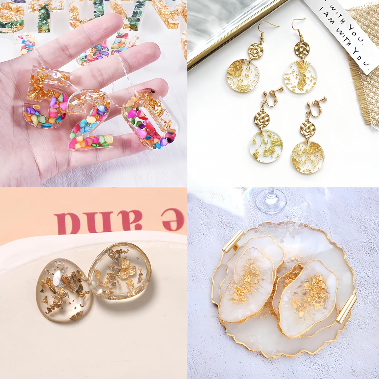 • Beauty and Makeup: The resin art gold flakes can be ground into powder and mixed with skin care products and serums. Apply to your face after cleaning to anti wrinkle. Our gold leaf resin decorations can also be used for makeup, engaging attention at parties, and performing