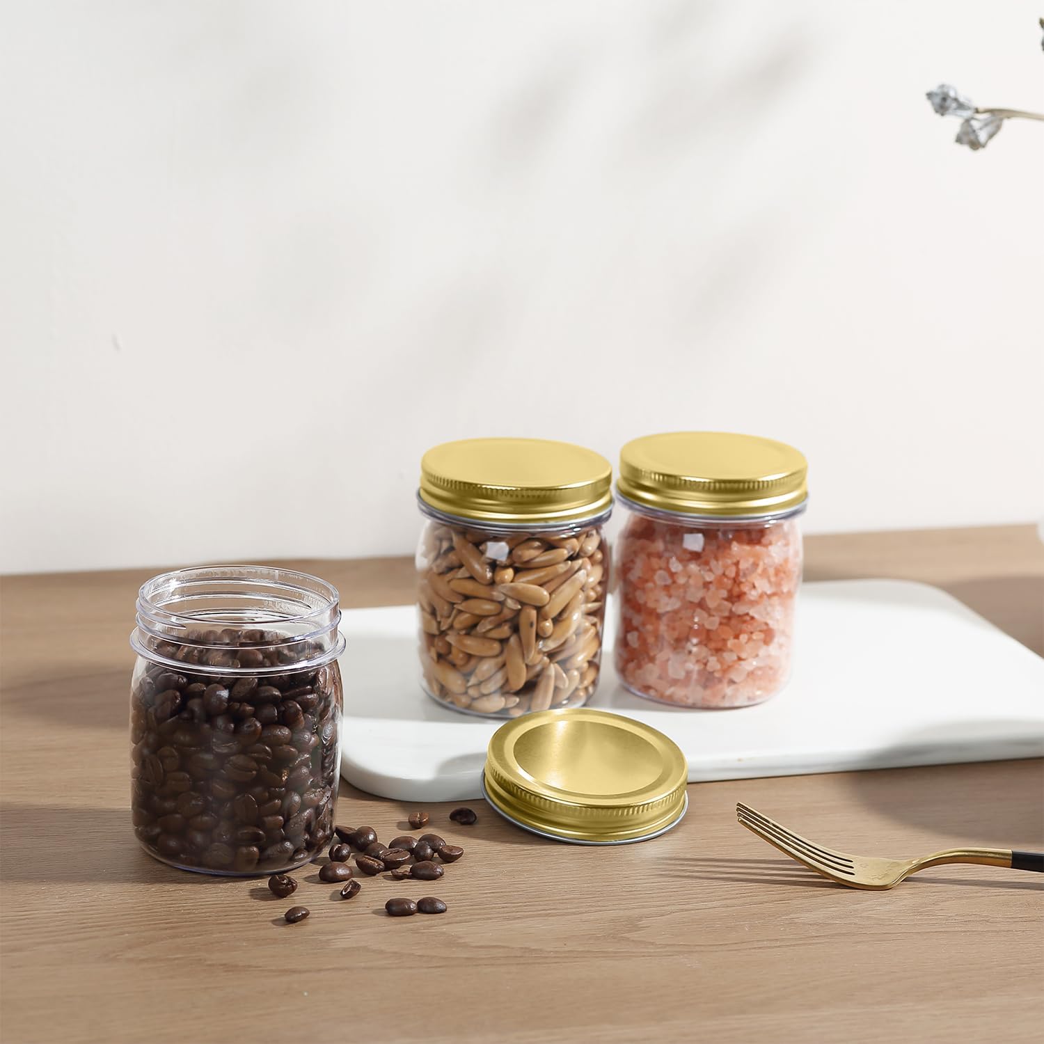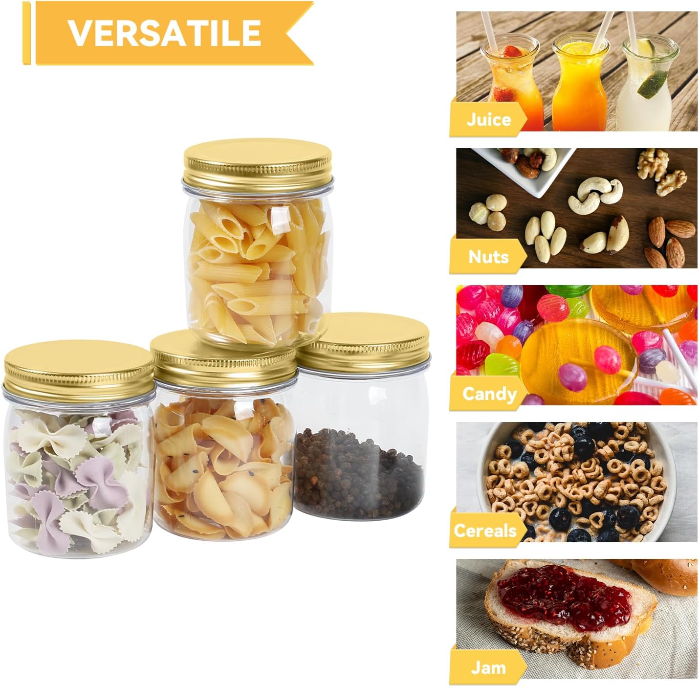 novelinks 8 oz Clear Plastic Jars with Screw-On Lids - BPA-Free Refillable Storage Containers for Slime, Spices, Crafts, Kitchen & Home Organization (48 Pack,Gold)