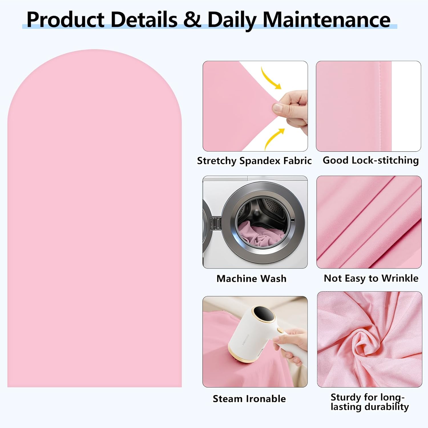 • Thick Spandex Arch Backdrop: This 7.2ft and 6 ft pink arch backdrop cover set is made of stretchy spandex fabric that provides a smooth, wrinkle-free appearance, and 2-sided coverage allowing for complete arch decoration from all viewing angles