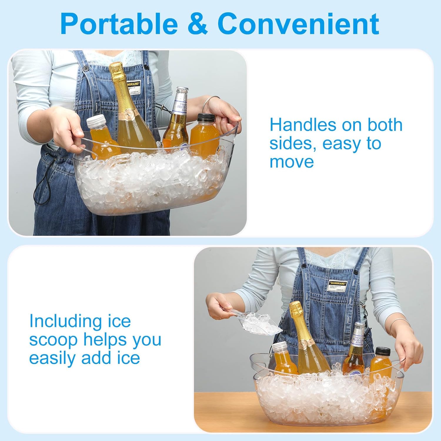 • 【Easy to Move】The handles on both sides of the drink buckets are comfortable, making it easy to move even when filled with wine. The included ice scoop helps you add ice cubes with ease.
