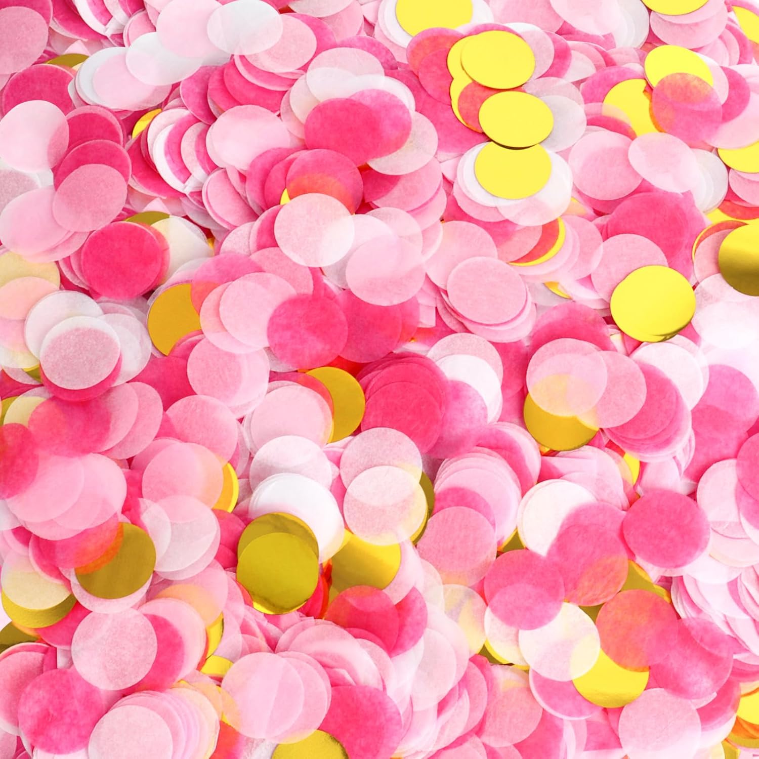 • Pink Gold confetti: Includes light pink, sky pink, sapphire pink, gold foil, gentle cute and celebratory colors. Pink circle confetti's bright soft hues and gold foil smooth surfaces promote the visual richness and celebratory atmosphere