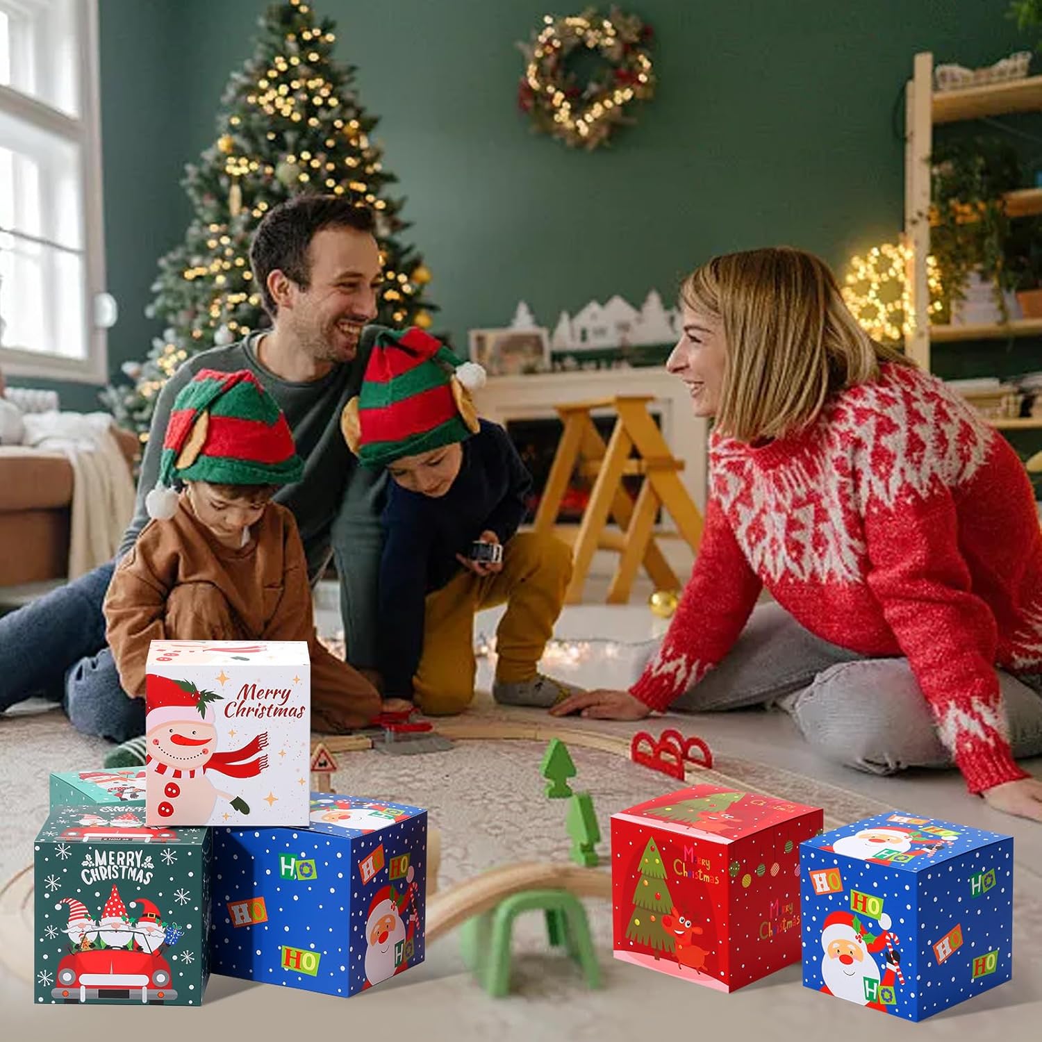 • 5 Classic Designs: Includes 20 individually wrapped holiday gift boxes featuring 5 festive designs - Christmas Tree, Santa Claus, Reindeer, Snowman, and Christmas Car (4 pieces per design). Perfect for parties, gift-giving, or family sharing, these delightful Christmas gift box will sweeten your Christmas celebrations!