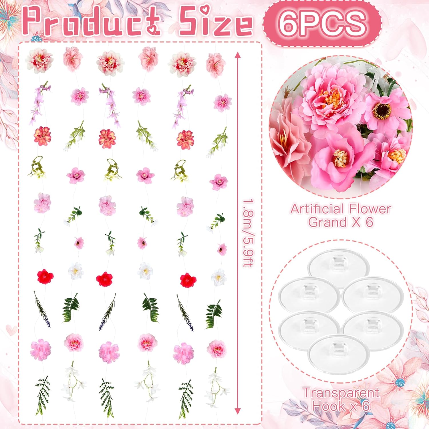 • PRODUCT CONTENT & QUANTITY:This set includes 6 hanging floral garlands, each with 10 flowers and green leaves of different sizes, suitable for making exquisite decorations. This set also includes 6 ceiling hooks for easy hanging, allowing you to easily decorate any space. This set of flower garlands serves as a backdrop that is sufficient to meet your various decoration needs, whether it is for weddings, parties, or casual home decor.