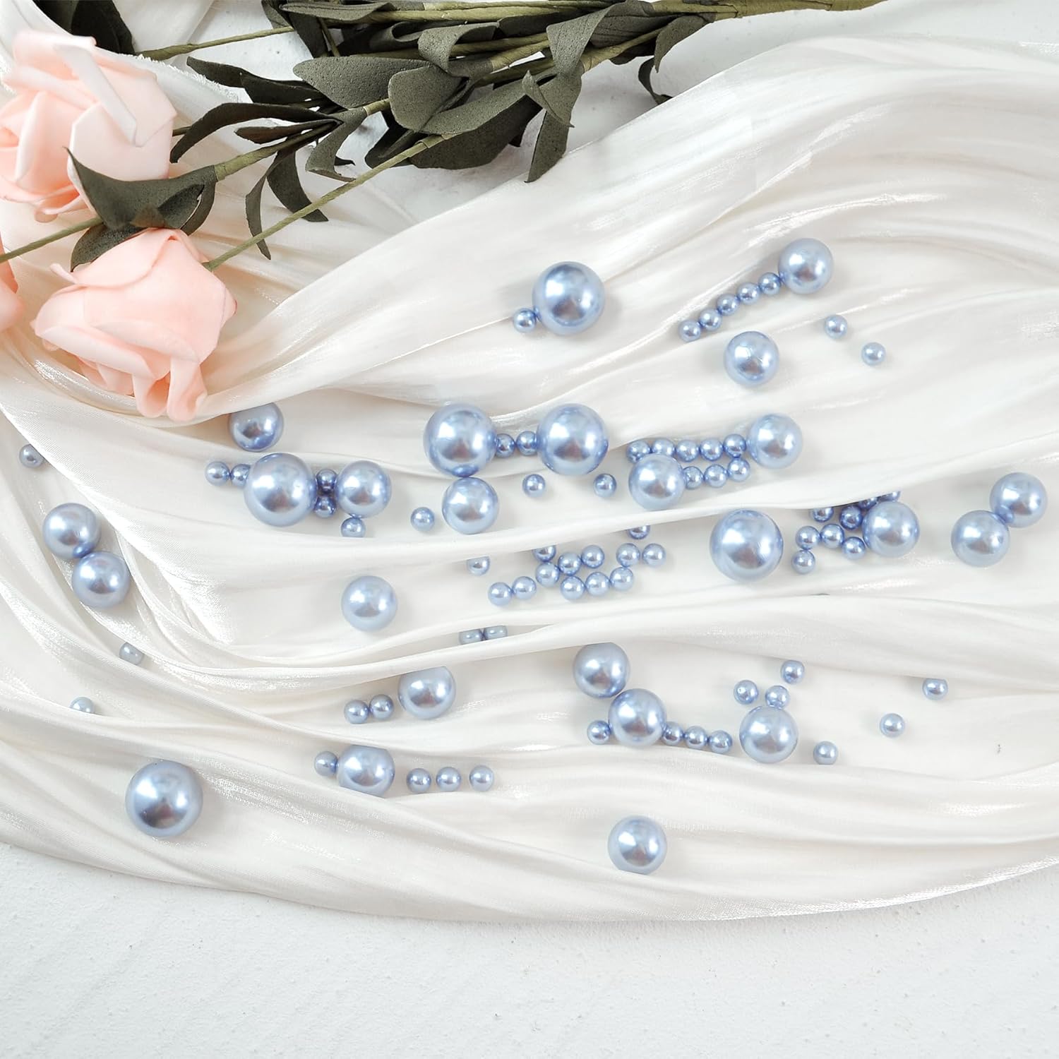 520Pcs Greyblue Beads for Centerpieces Decor, Artifical Pearls Vase Filler, Large Beads for Makeup Brush, No Hole Round Pearl Beads for Wedding Birthday Christmas Party Home Decor(18mm 14mm 6mm)