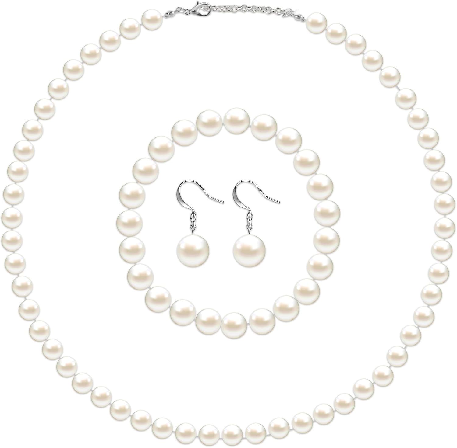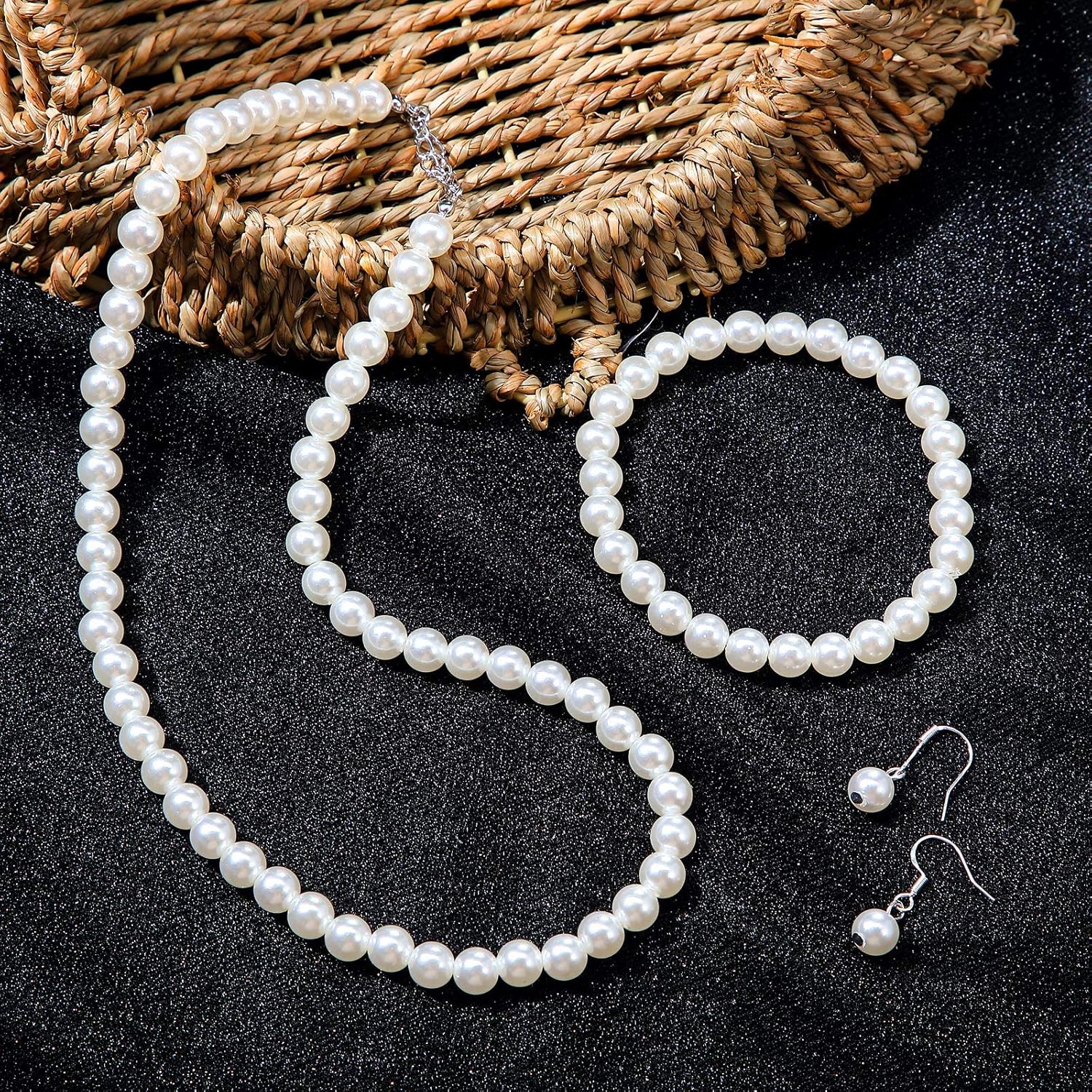 • Faux Pearl Jewelry Set: the faux pearl jewelry set includes 1 pearl necklace, 1 elastic beaded bracelet and 1 pair of pearl earrings, the necklace measures approximately 18 inches, the bracelet is 7.9 inches long, a set of matching pearl jewelry is worthy of your favor