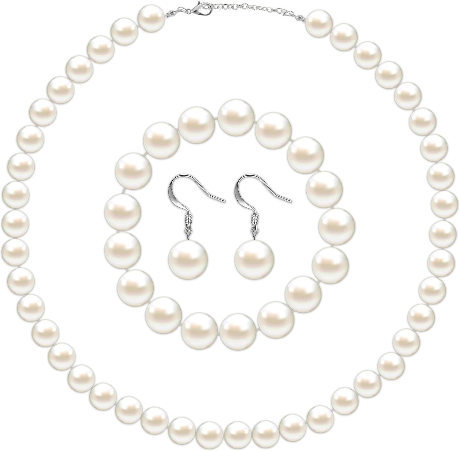• Manifest the Elegance and Charm of Women: wear our delicate faux pearl necklace, matching pearl earrings, and stretch beaded bracelet, delicate jewelry always shows the elegance and charm of women, making you look elegant, confident, shiny and charming, and bringing you a good mood