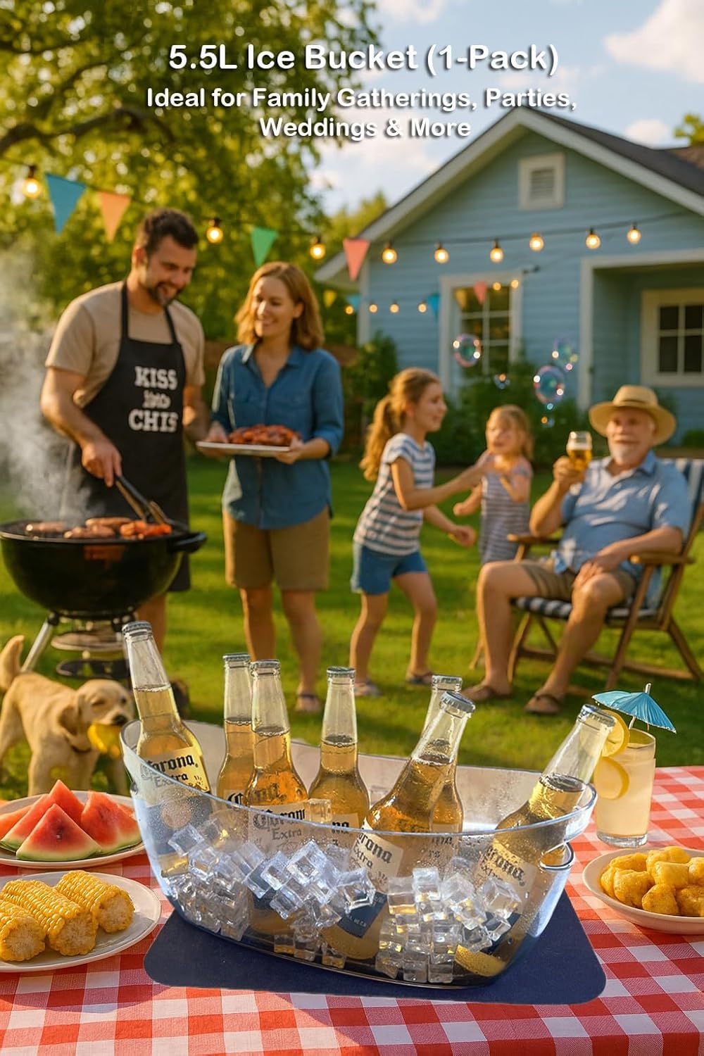 • 🍻5.5L Boat Shape Ice Bucket –With ice, it is recommended to store 5-7 bottles of 330ml beer or 2-3 bottles of 750ml champagne. The wider curved angles of the oval base conform closely to the curves of champagne bottles, minimizing wasted space and thereby allowing more ice or beverages to be accommodated.