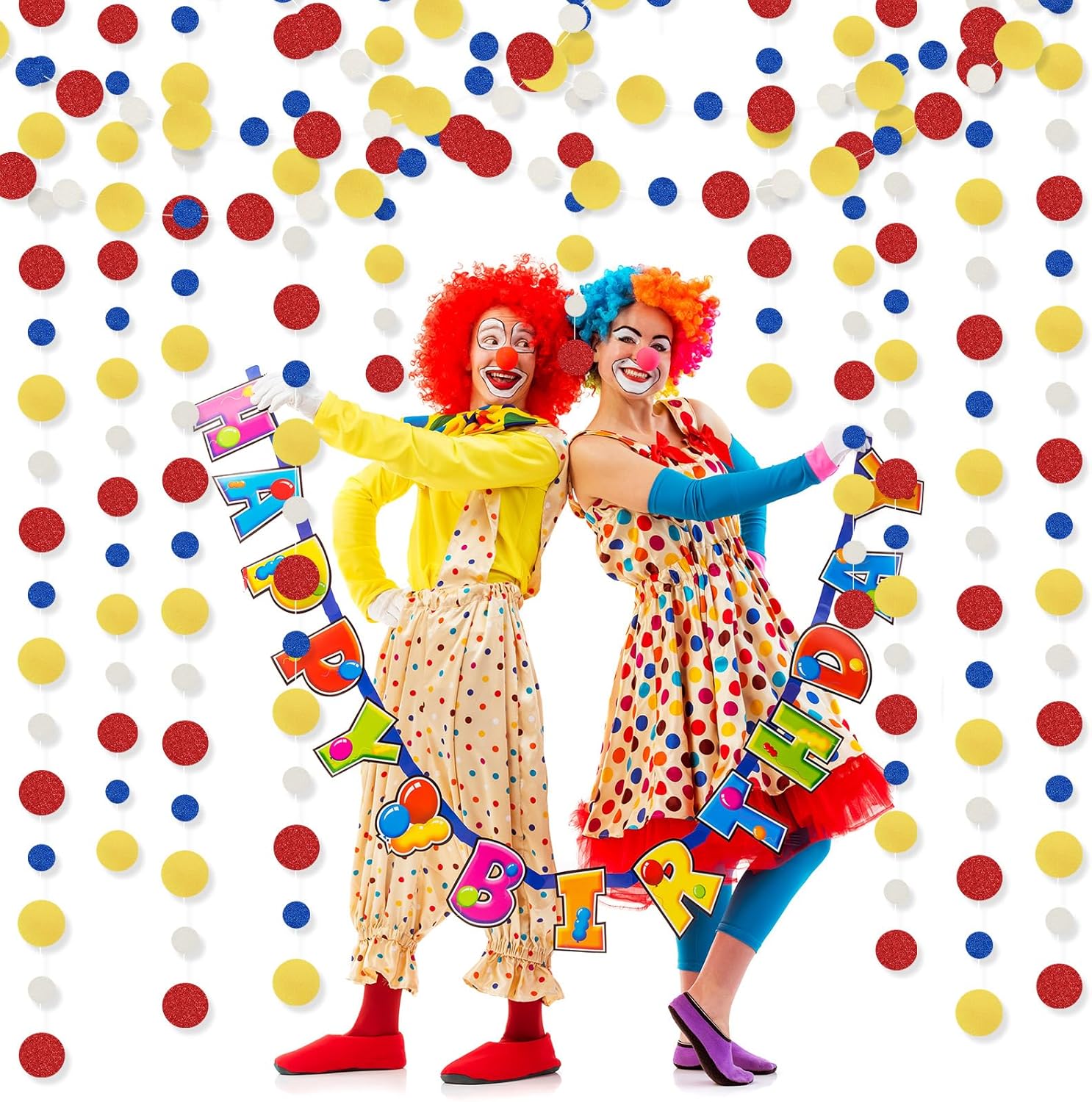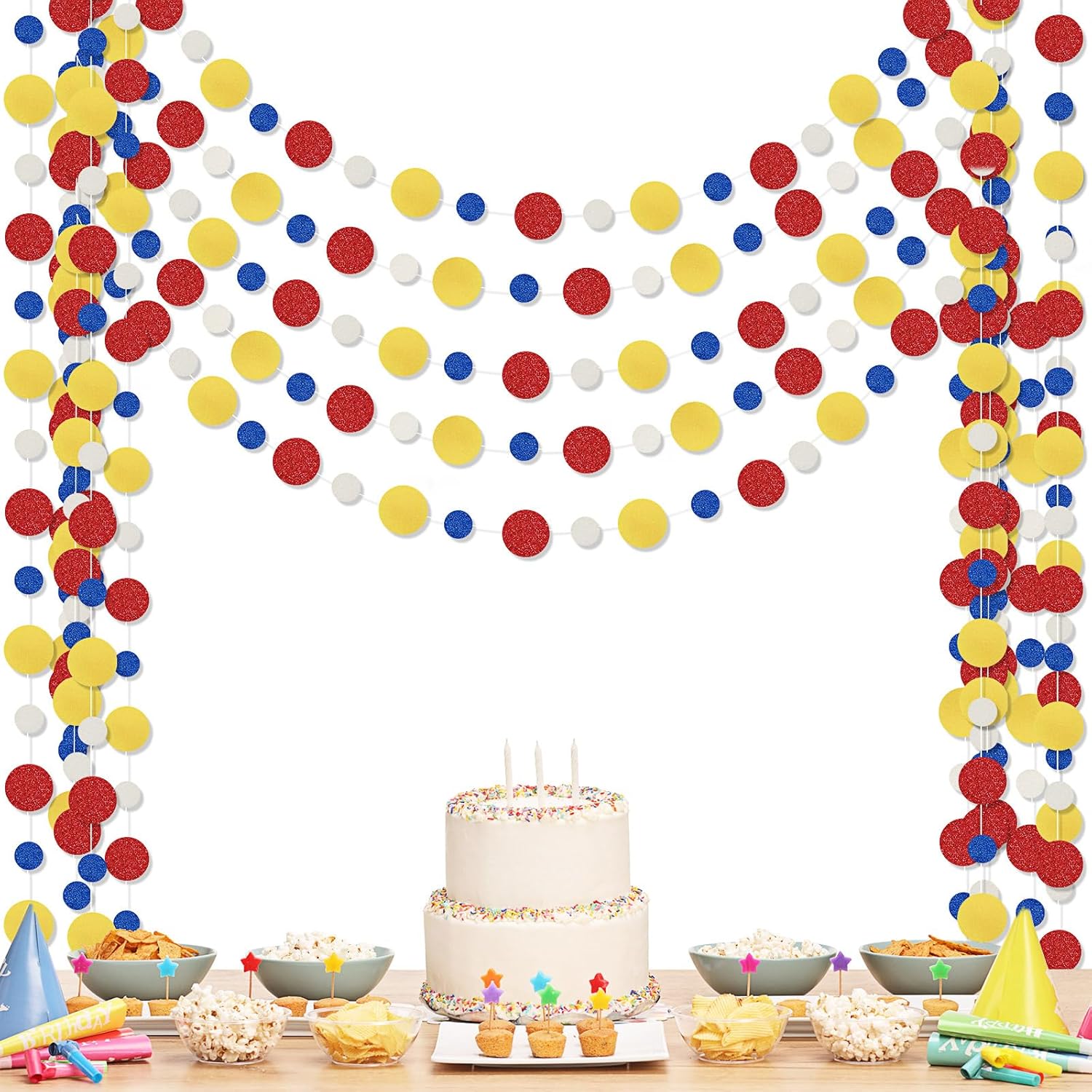 Outus 5 Pieces Colorful Dots Paper Garland Round Glitter Garland Hanging Confetti Streamers Backdrop for Candy Birthday Classroom Halloween Trunk or Treat Car Decoration (Red,Blue,Yellow)