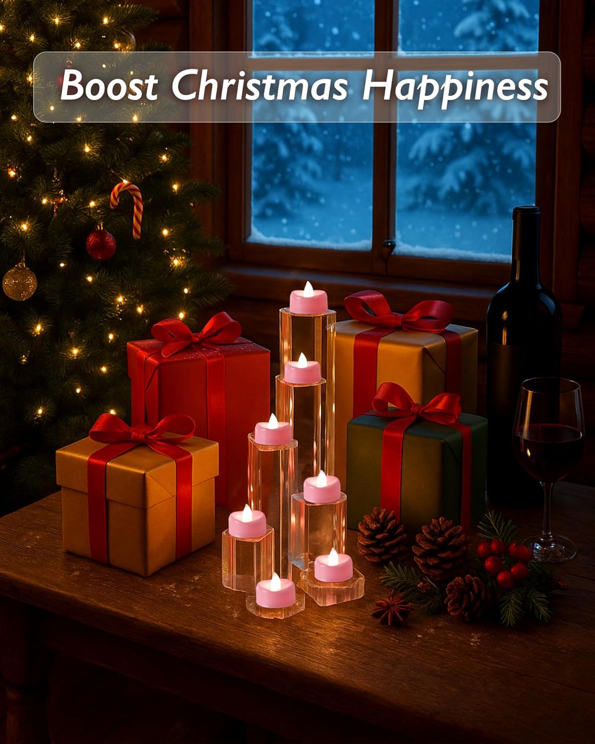 Raycare Pink LED Tea Lights Battery Operated, 200+Hour Flickering Votive Candles,Realistic Fake Flameless Tea Lights for Wedding Party Halloween Thanksgiving Christmas Decorations, 24 Pack