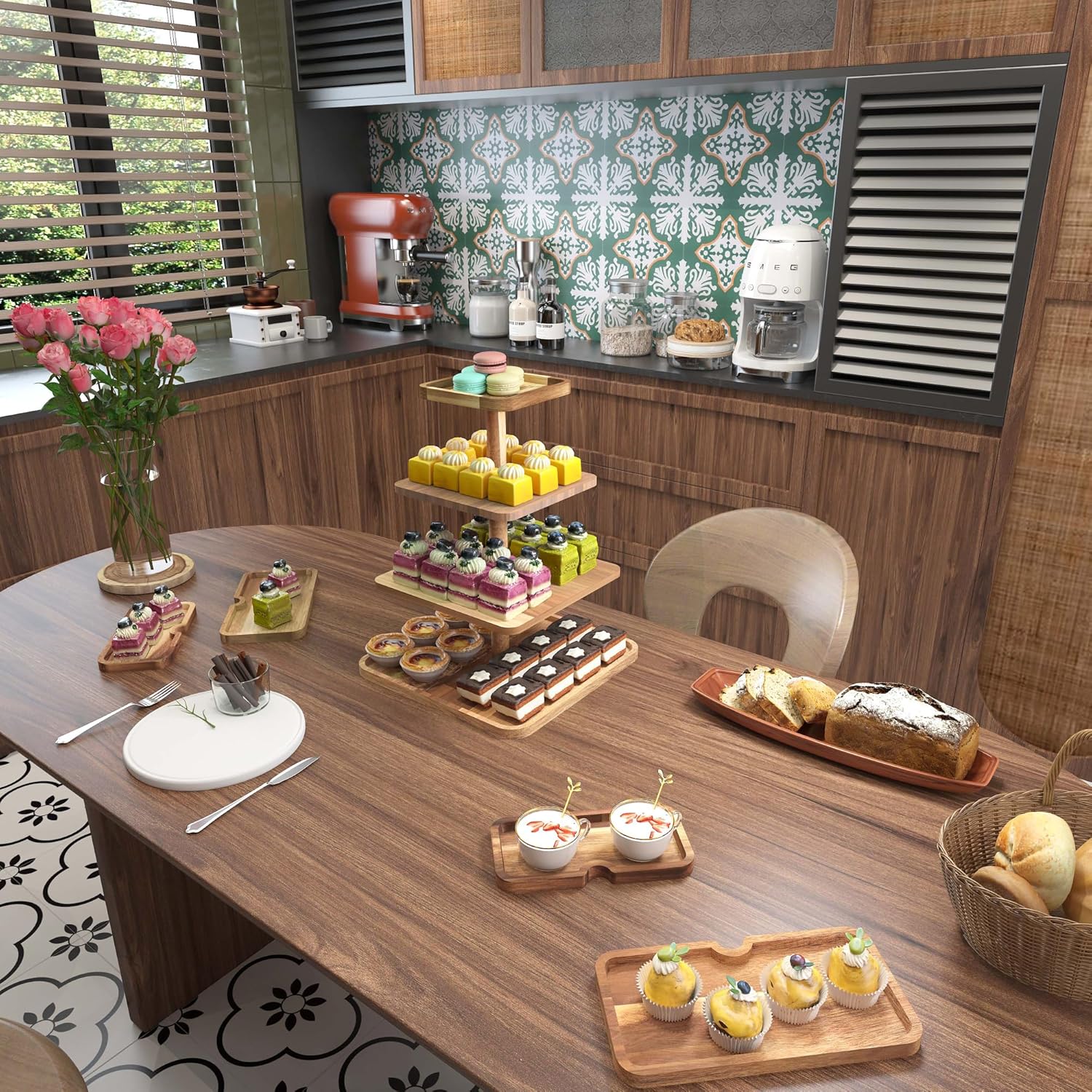 • Durable and Easy to Clean: The surface of the Acacia Wood Cupcake Stand is treated with oil and polished, making it easy to clean and highly durable. It resists deformation and maintains its beauty over time.