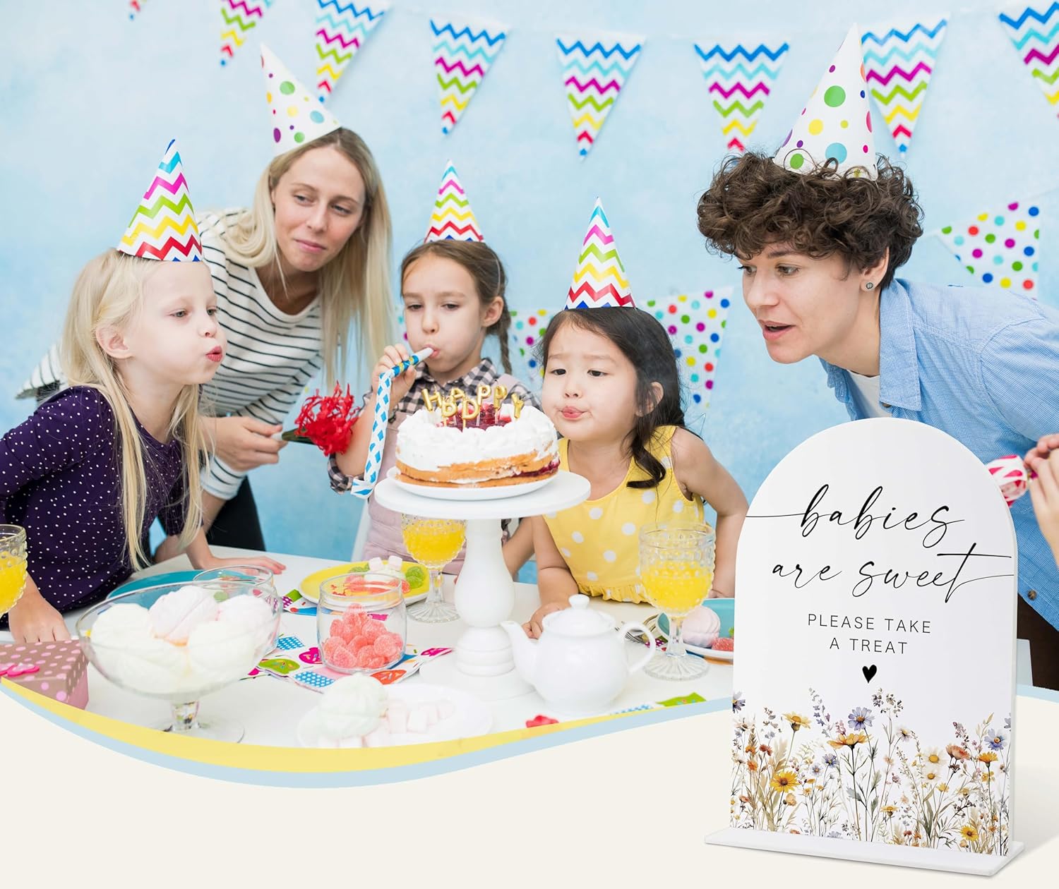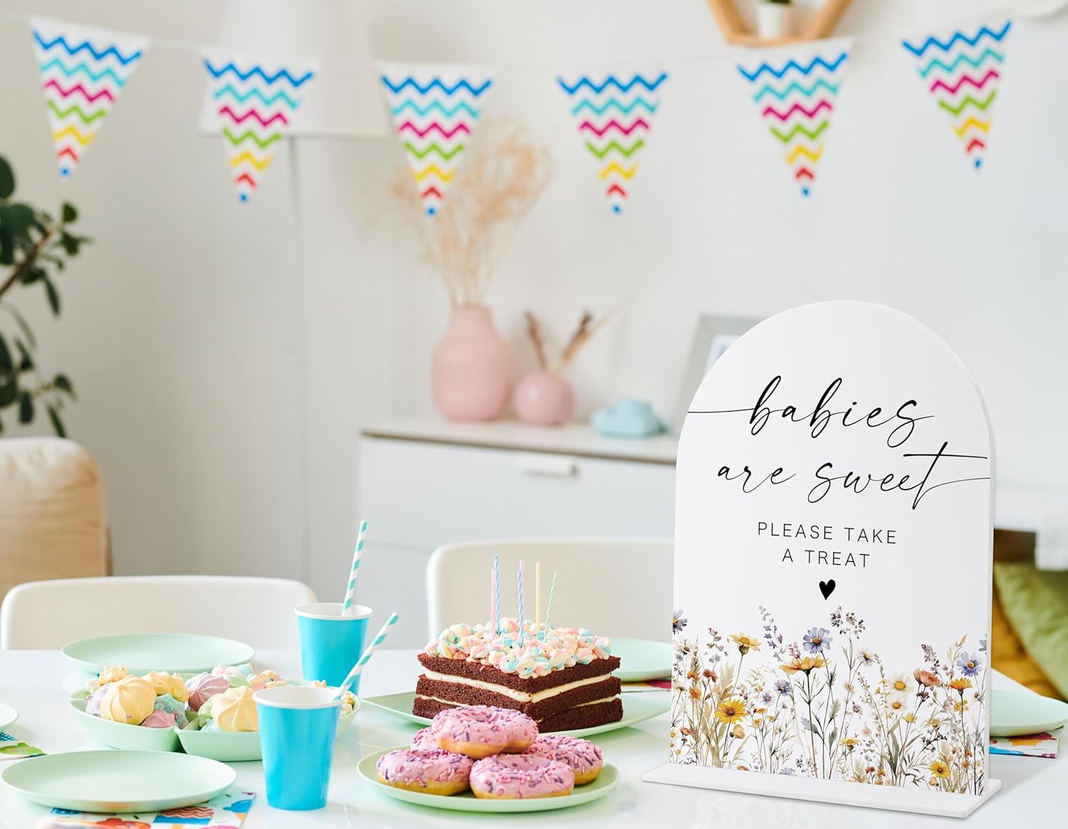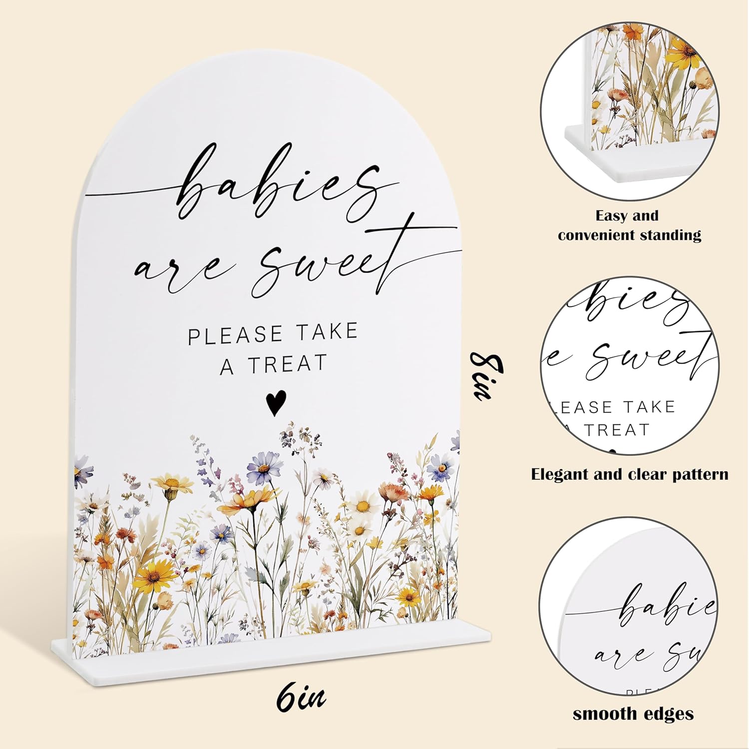 Acrylic Table Signs, Boho Floral Babies are Sweet Please Take a Treat Sign, Baby Shower Table Centerpieces, Supplies for Gender Reveal Party and Newborn Announcement Reception and Event Party, 34