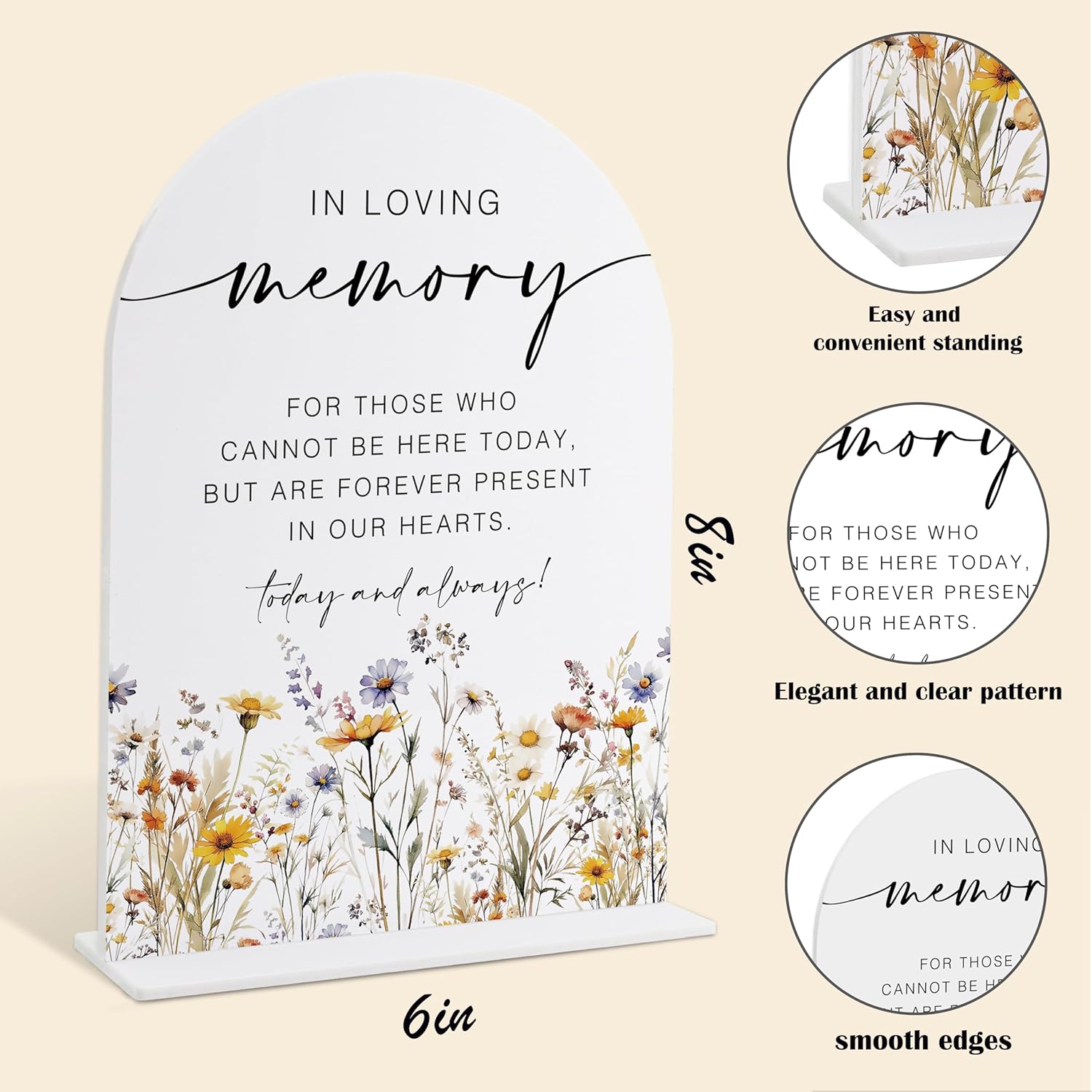 Memorial Table Sign for Wedding, Boho Floral In Loving Memory Sign, Wedding Signage with Stand, Bridal Shower Table Centerpieces, Supplies for Engagement Reception and Event Party, 37