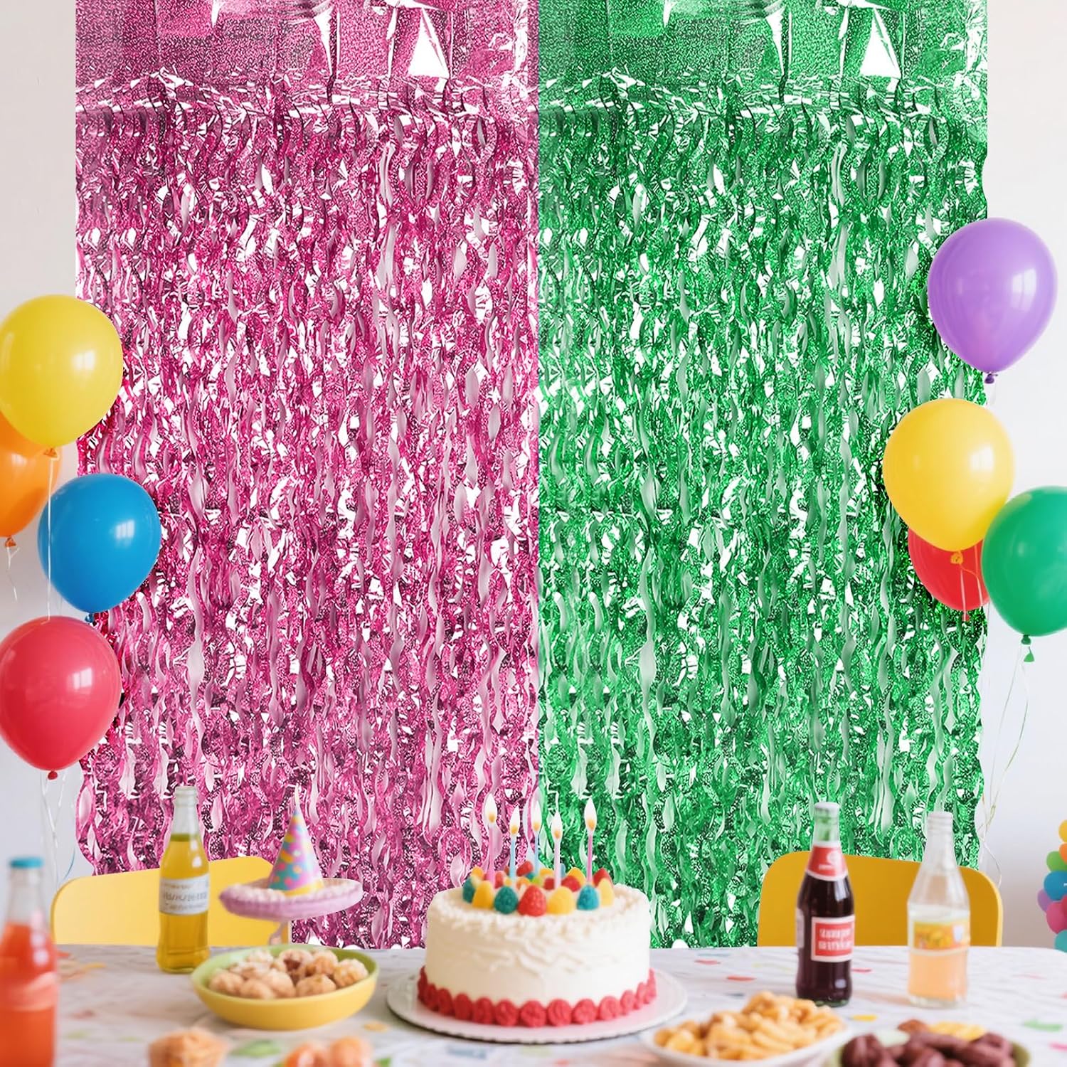 • 🎉SAFE & SHINY MATERIAL- This Pink and Green Wavy tinsel backdrop is made of high-quality shiny tinsel, non-toxic, odorless, and non-fading, safe for families with children and pets. Just transform your home into a shining streamers happy birthday decorations, and enjoy the party.