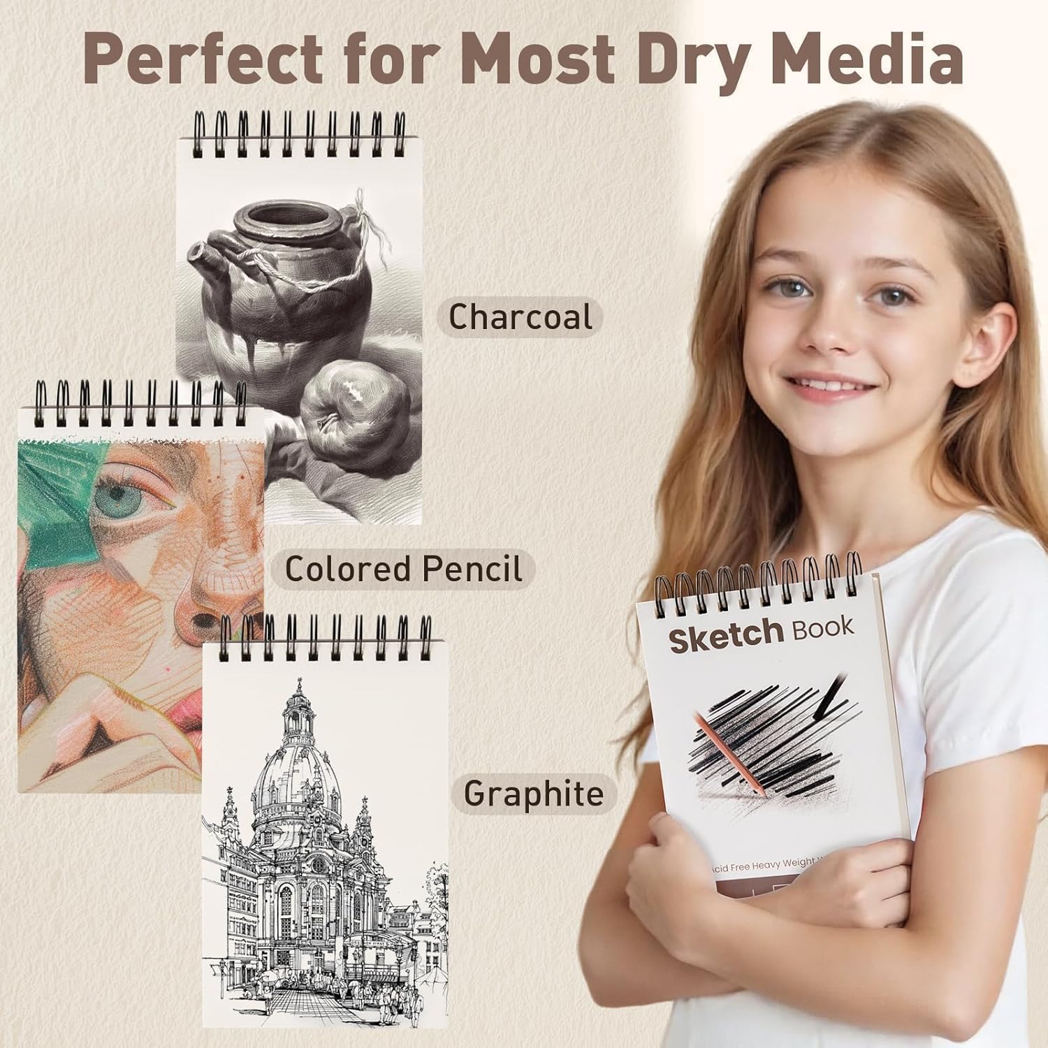 • Portable Size with Sturdy Backing: 5.5"×8.5" Lightweight sketch pads for drawing pairs with warp-resistant rigid backing fully protects against bending, splashes, and backpack bumps—no extra support needed, so you can create anytime, anywhere when inspiration strikes