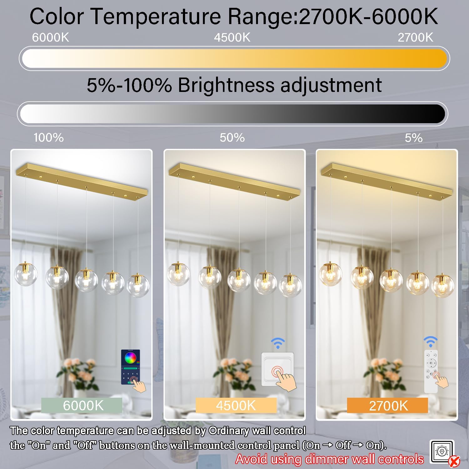 • 【Smart LED Chandelier 】It is equipped with a remote control and APP control for seamless dimming between warm white (2700K) and cold white (6000K), as well as adjustable brightness ranging from 5 to 100 percent.