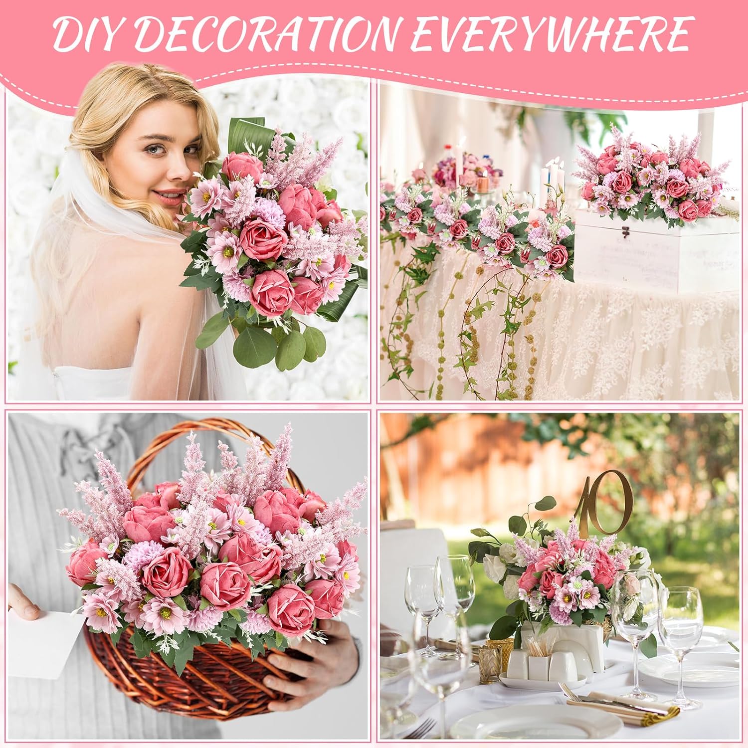 • Appropriate for Many Occasions: the quality and realistic looking faux flower bouquet is appropriate for a wide range of occasions; Be it a wedding, anniversary, birthday, housewarming, or even everyday home decoration, the bouquet is a suitable choice; It is also a nice fit for DIY arrangements, offering endless possibilities for personal customization