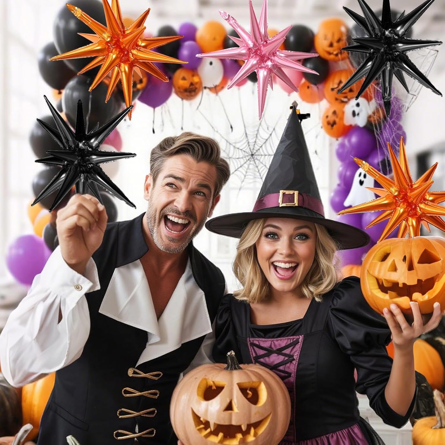 Black Orange Pink Star Balloons,9Pcs 22Inch Orange Pink Black Explosion Spike Cone Helium Polyester Film Star Foil Balloons for Halloween Birthday Anniversary Baby Shower Party Decorations
