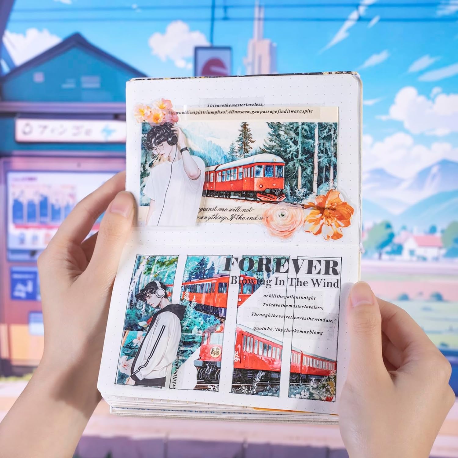 • Train Scenery Designs: 6 unique rolls feature colorful train and landscape illustrations adding a storytelling touch to travel journals scrapbooks and memory albums for creative projects with vivid seasonal charm