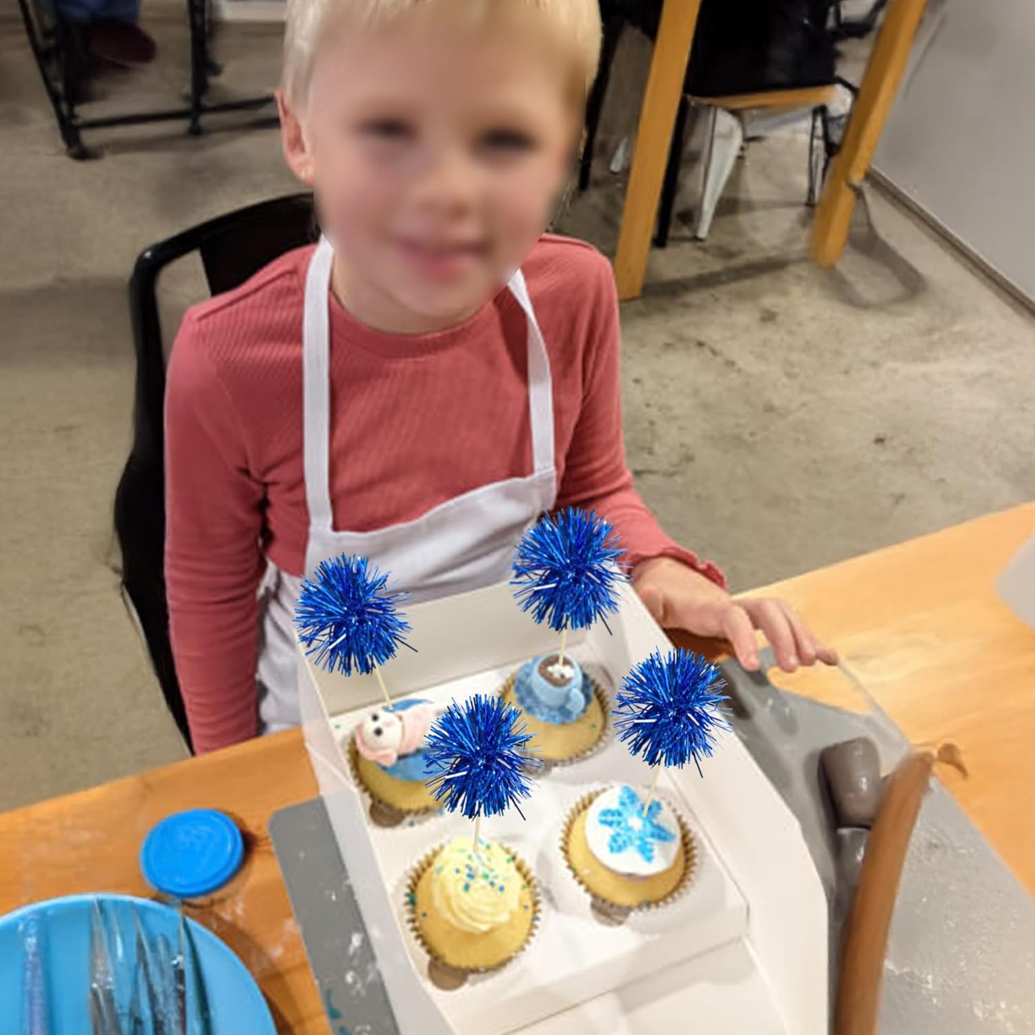 Ephlyn 30Pcs Foil Firework Cupcake Toppers Sparkles Fireworks Sticks Birthday Decorations Sparkle Tinsel Cocktail Fruit Toothpick for Birthday Wedding Graduation Party Cake Decorations Blue