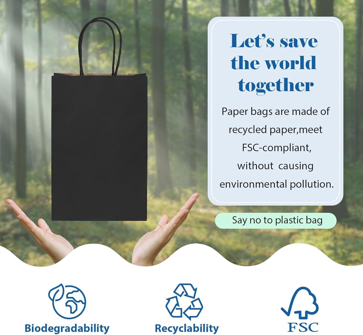 • Sustainable FSC-Certified Packaging: Kraft bags with handles bulk made from FSC-compliant recycled paper. Black gift bags with handles are biodegradable, recyclable and compostable. Reduces waste while meeting retail packaging standards for eco-minded buyers