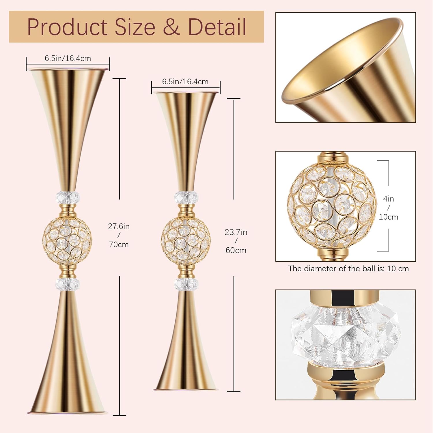• 【Commercial-Grade Construction】Heavy-Duty Stainless Steel Commercial Wedding Vase with Crystal Centerpiece, The gold flower stand is elegant and luxurious, Match with fresh flowers, artificial flowers bouquets and feathers etc. which makes it an ideal decoration for wedding décor, prom night, official banquets, festivals, birthdays, baby showers, theme parties. daily occasions, such as living room, bedroom, fireplace, office, library or formal dining room, coffee shop, bar, hotel etc.