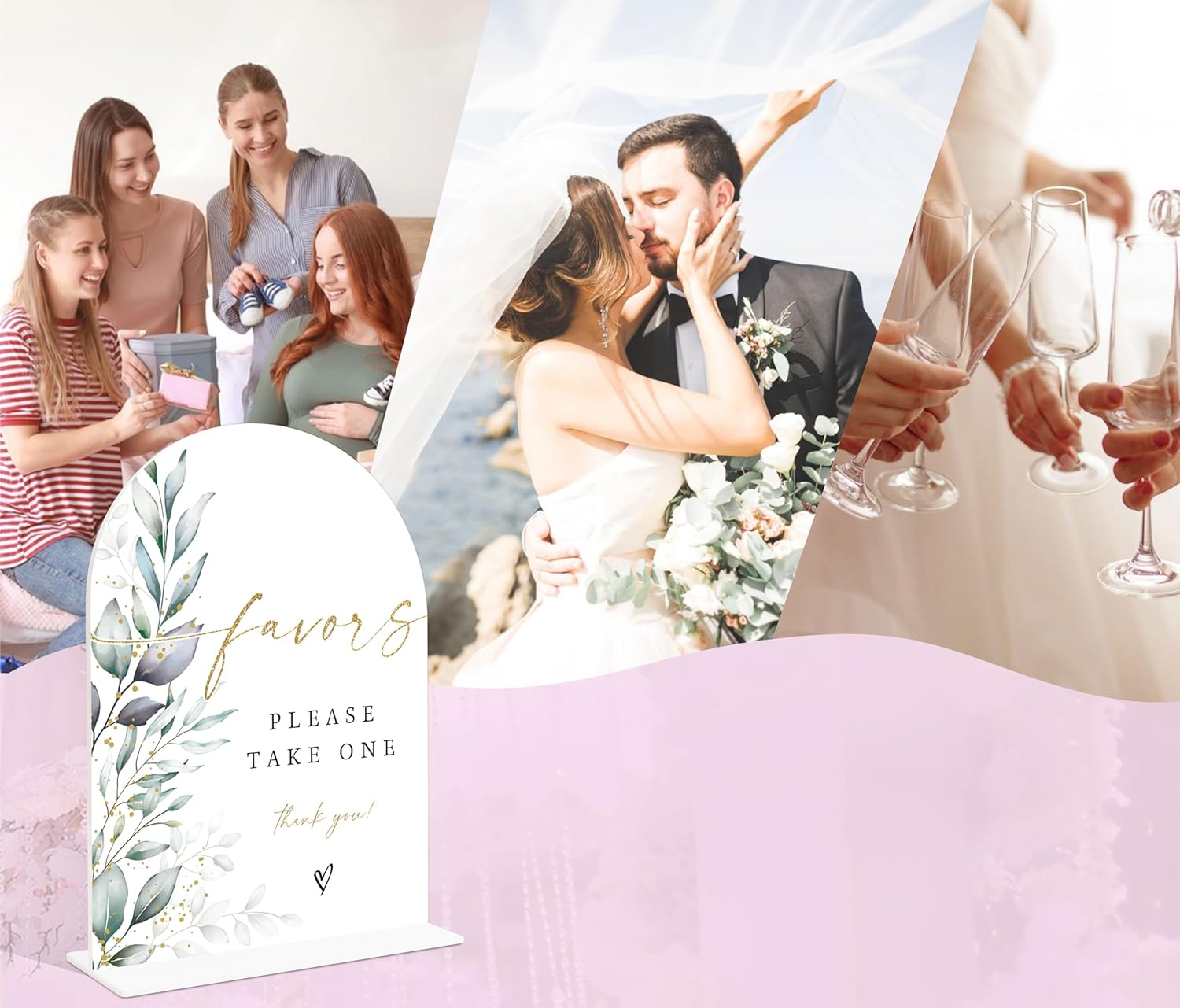 Acrylic Wedding Signs, Greenery Theme Favor Please Take One Sign, Wedding Reception Signage, Bridal Shower Table Decor with Stand, Engagement, Anniversary, Newlywed Events and Parties Supplies, 18