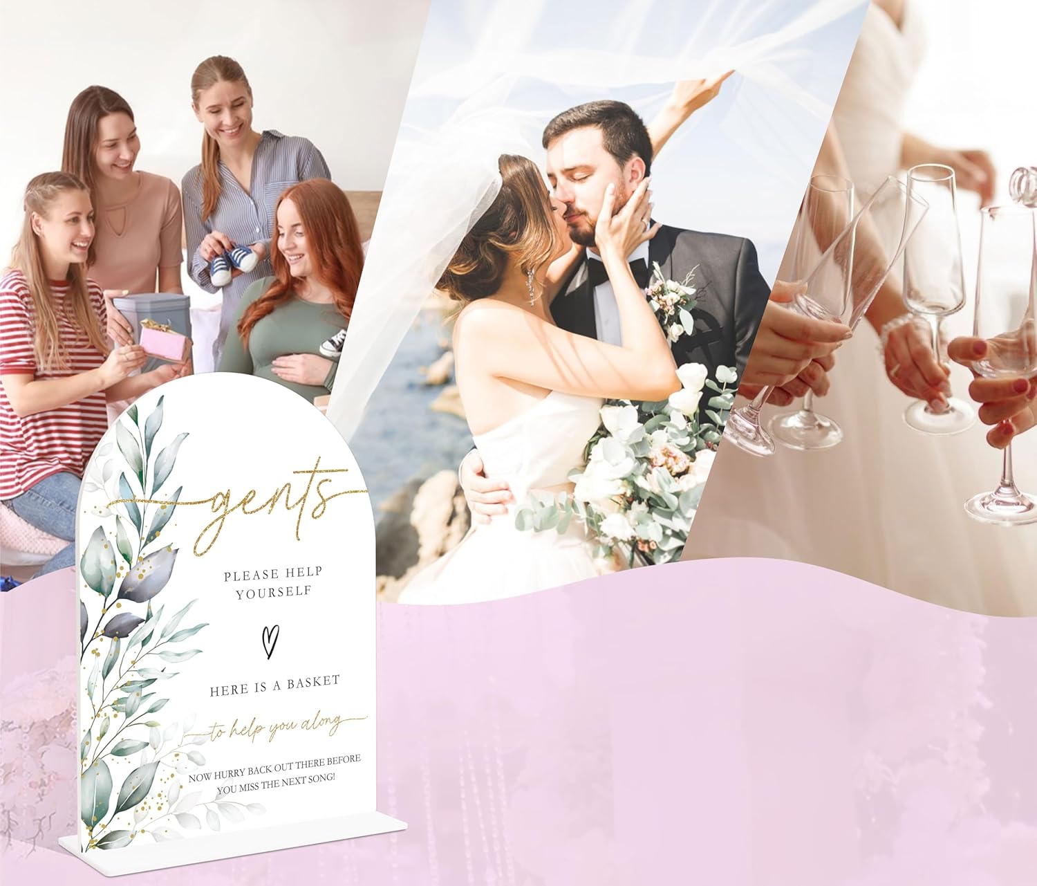 Acrylic Wedding Signs, Greenery Theme Gents Please Help Yourself Sign, Bridal Shower Table Decor with Stand, Wedding Bathroom Basket Supplies for Engagement, Anniversary, Newlywed Event and Party, 08