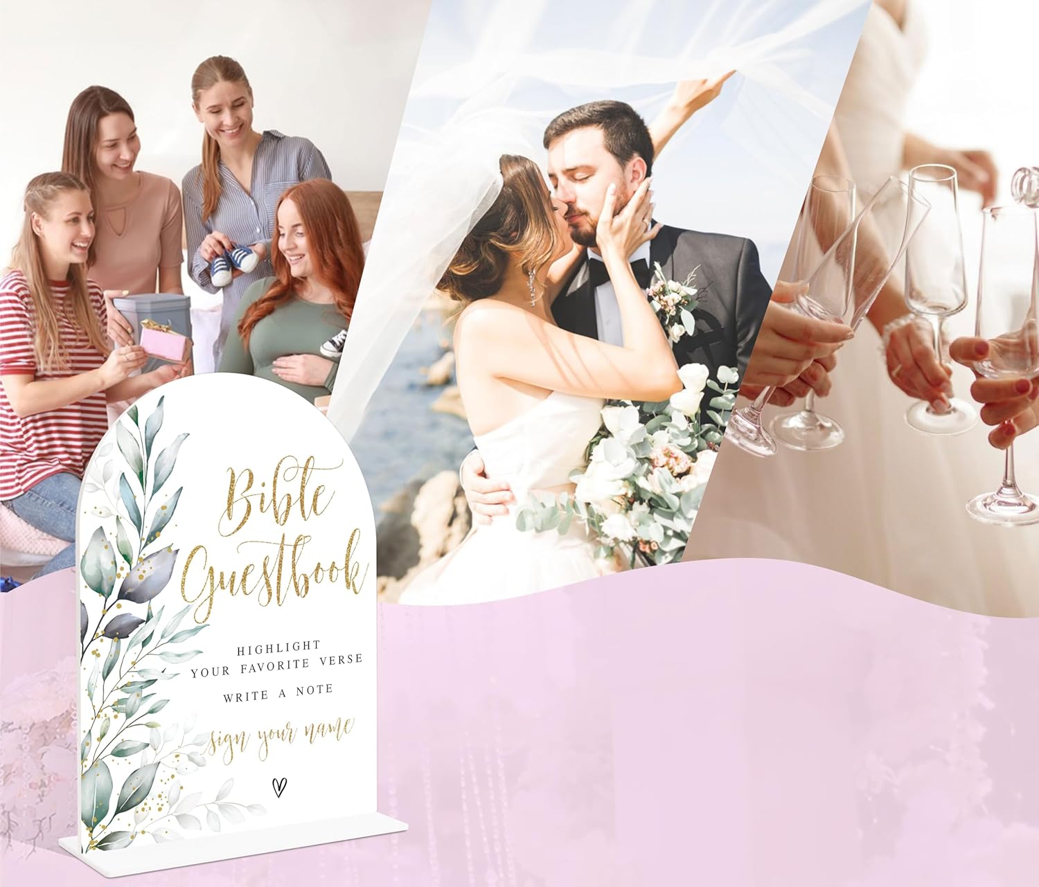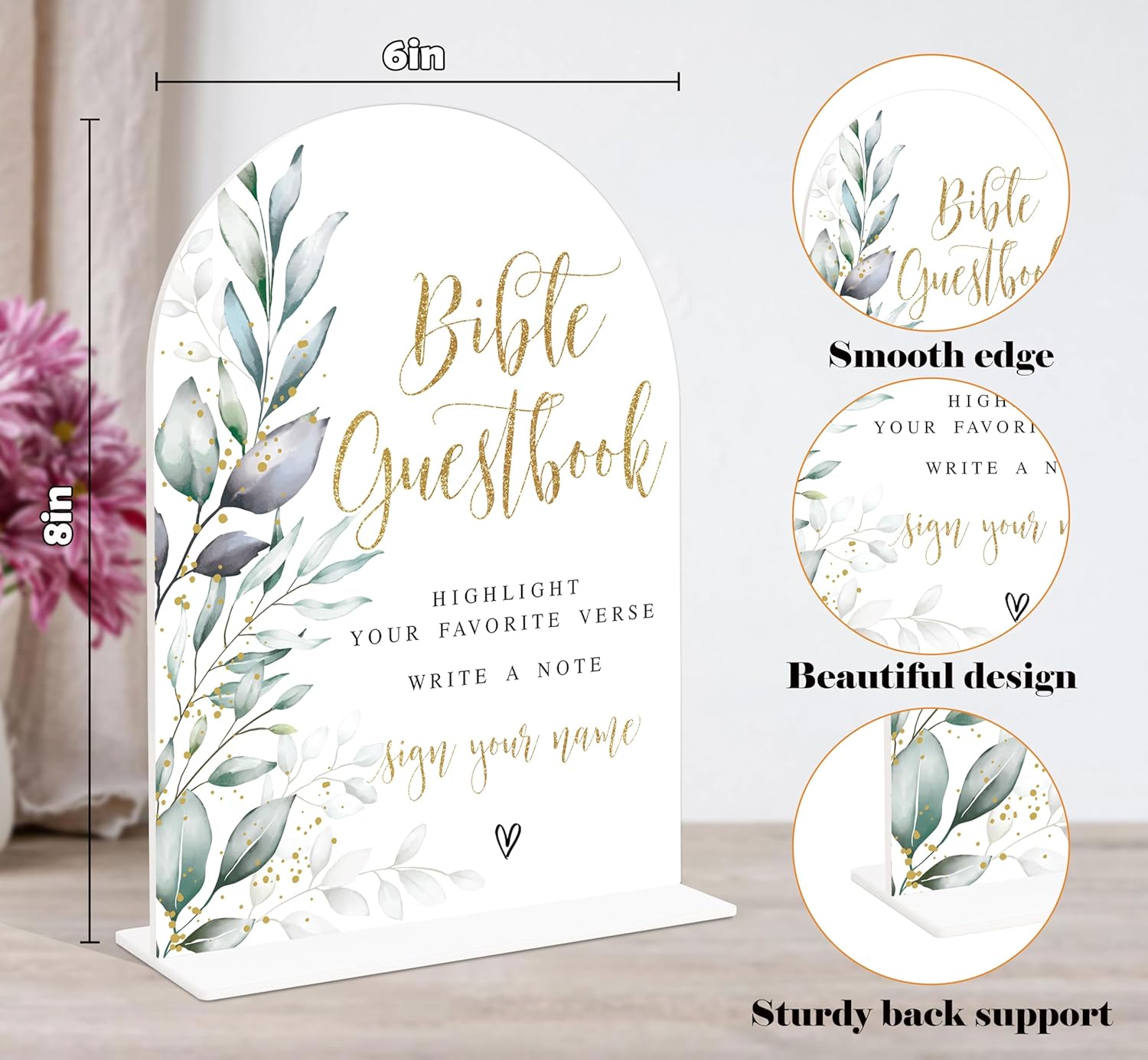 Acrylic Wedding Signs, Greenery Theme Bible Guestbook Sign, Wedding Reception Signage, Bridal Shower Table Decor with Stand, Engagement, Anniversary, Newlywed Events and Parties Supplies, 21